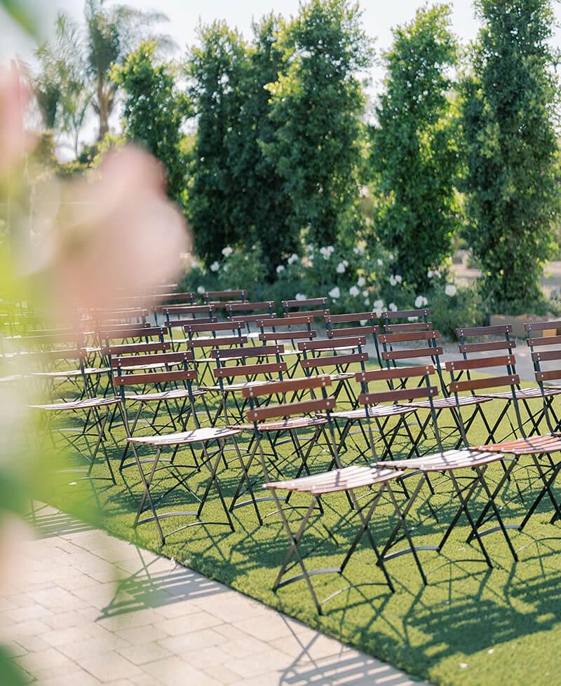 • The grounds are yours for up to eight hours. • Exceptional amenities throughout. • We offer 30+ linen colors, provide china, flatware, & glassware. • We provide vineyard cross back chairs and iron wood folding chairs. • 20x21 Dance floor and market lighting. • Reception lawn bar & cocktail hour bar. • Round and wood rectangle tables, as well as highboy cocktail tables.