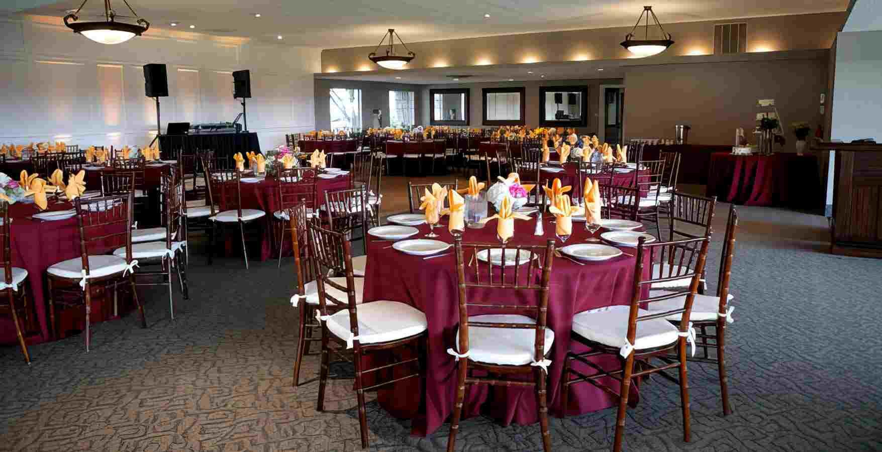 tables & chairs, dance floor, ceremony site, elegant ballroom, large parking lot, bridal suite, ambient lighting, private setting, all inclusive packages