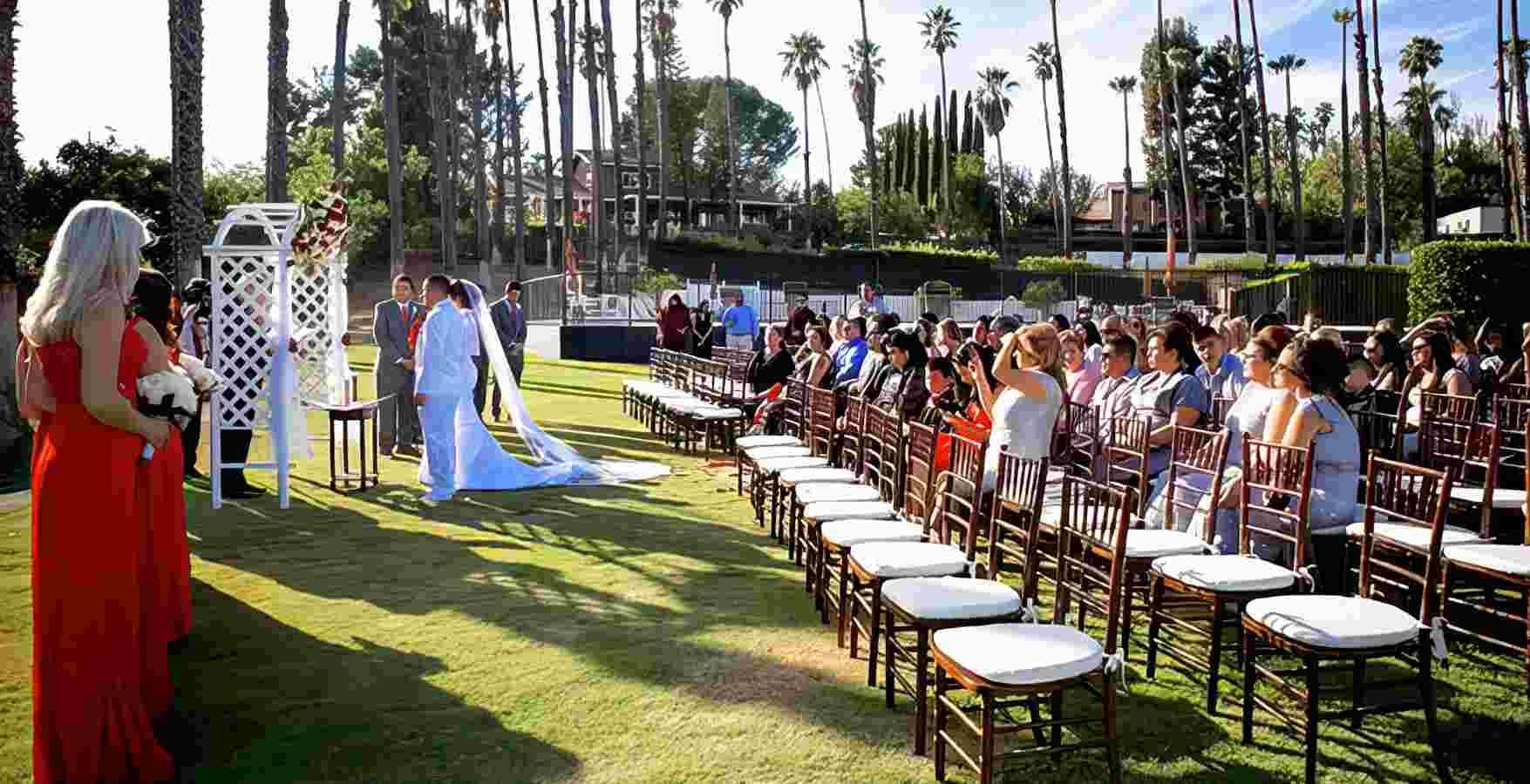 Nestled between the rolling hillsides of California, The Legacy Ballroom at Tustin Hills Racquet Club offers soon-to-be-wed couples a singularly peaceful locale for an elegant big day. Experience an unforgettable wedding at Tustin Hills Racquet Club’s Legacy Ballroom. First, exchange your vows in the fresh outdoors and enjoy a lovely ceremony on the grass. Your family and friends will watch your magical moment down the aisle from perfectly lined white chairs. Make sure to take advantage of the lush green property for your first photos as a married couple. Afterwards, gather your family and friends for a reception to celebrate your nuptials.