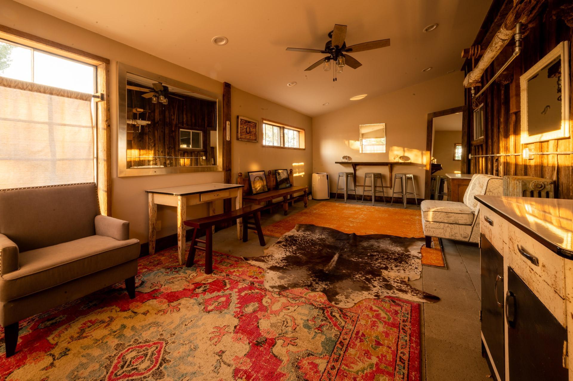 Once a part of a larger working ranch, the Twisting T-Bar remains a working ranch that encompasses roughly 160+ acres of Nevada range land that borders the East Fork of the Carson River. The 1800's barn easily accommodates 80 people for a sit-down event with an adjacent field for tenting and a total capacity of 250 guests. A custom bridal suite, space for a bar and dancing allow for an open and free flowing event. Vintage farming and ranch equipment add to the ambiance and history.