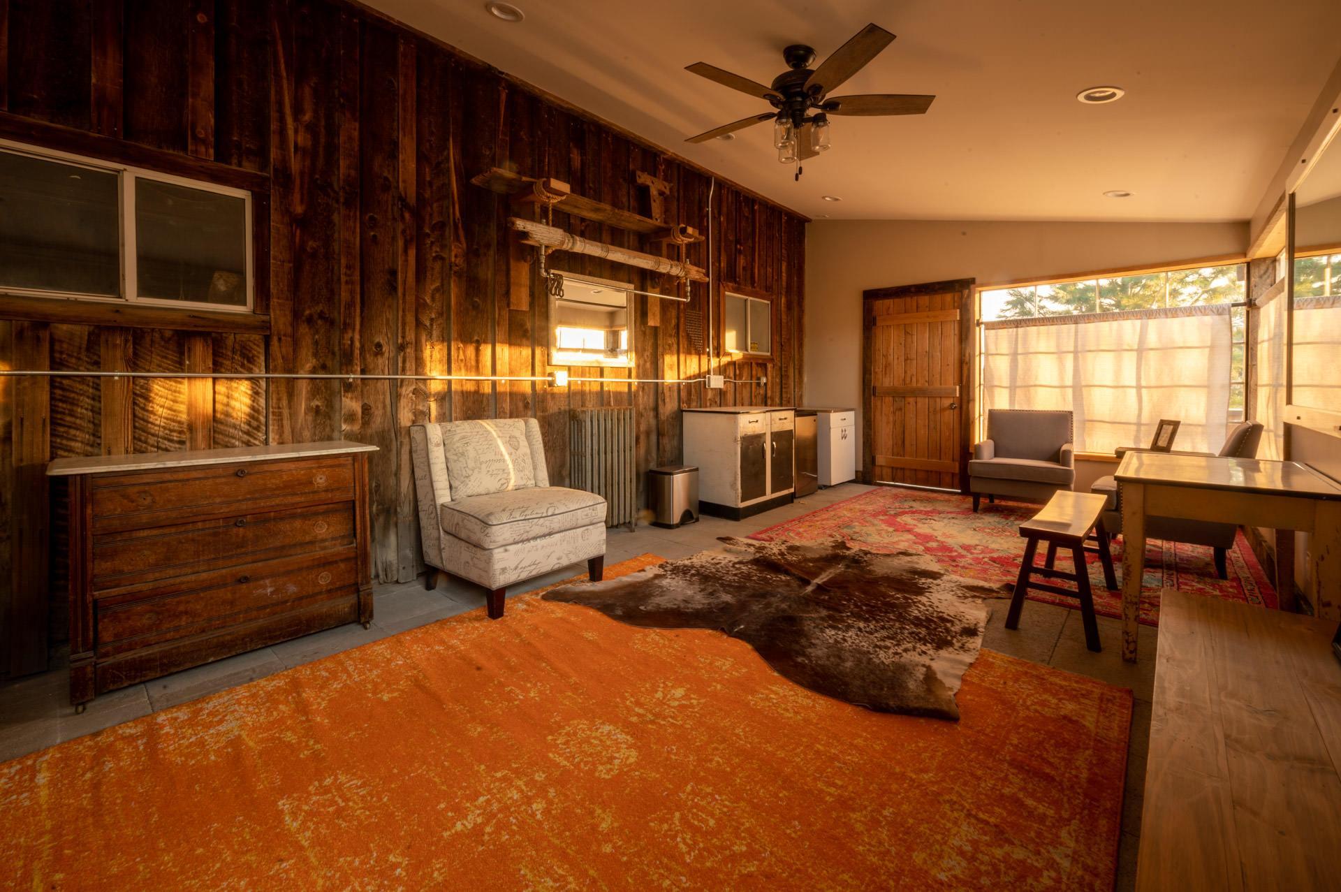 This space features a beautiful chandelier, market lighting, covered patio and incredible character.