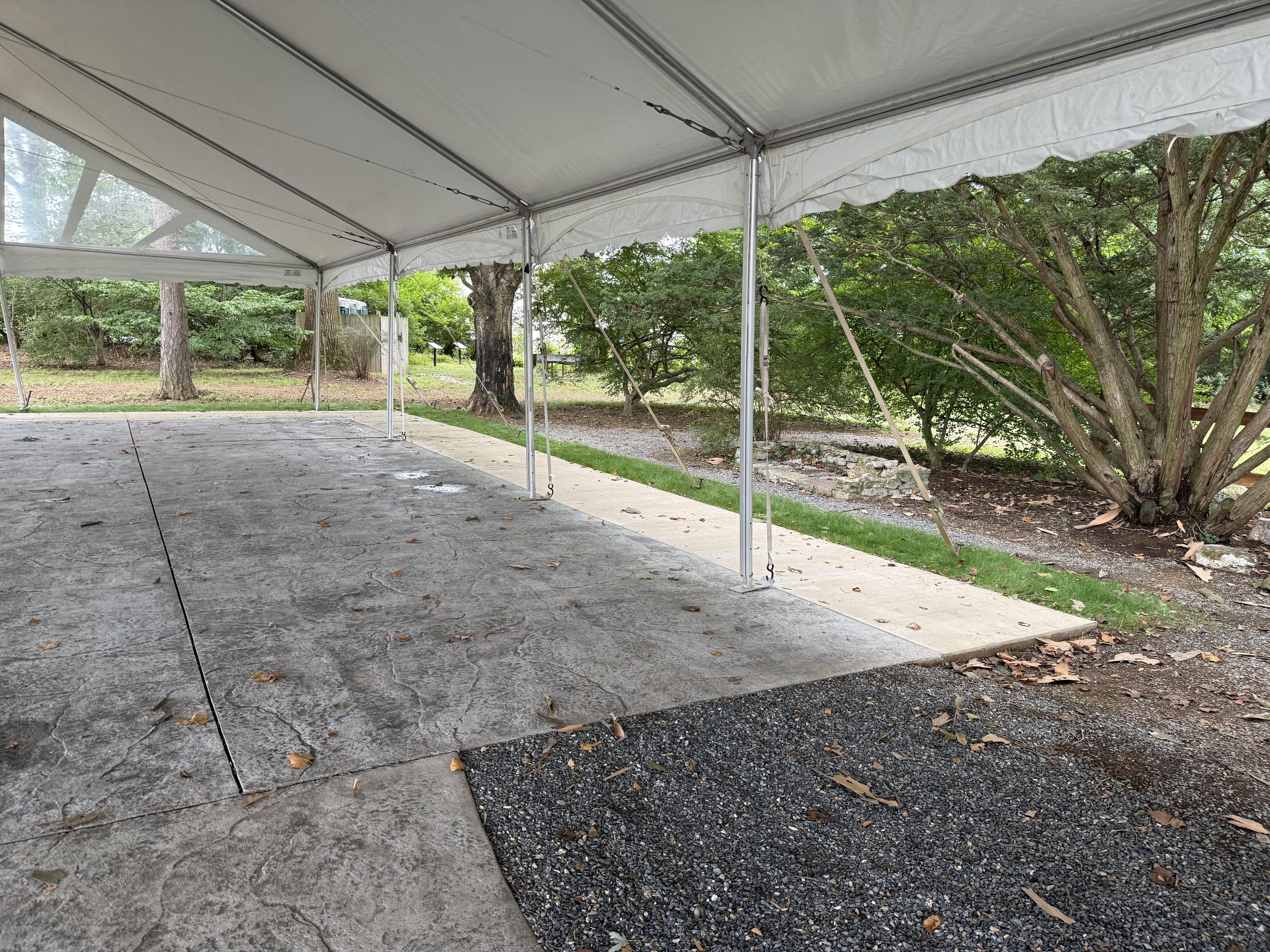 Two patio areas, one tented April thru end of October. The area is surrounded by mature trees with access to the inside.