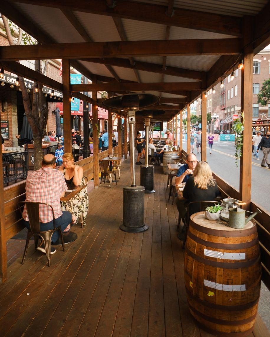 The Whiskey Bar accommodates groups of 100+ guests. This private entertainment & event space combines a casual, comfortable atmosphere, featuring leather high top seating, repurposed wood and metal accents, four large plasma screen televisions, a full service private bar, a portion of the outdoor patio and a private entrance in to the event space from 5th Avenue.