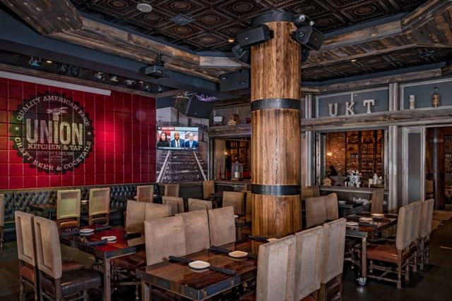 Union Kitchen & Tap boasts an impressive 7,(personal information protected by Zola). of flexible meeting and event space, featuring rustic reclaimed wood elements, salvaged metal accents, and contemporary furnishings, along with garage-style doors that open to a generous patio. With three full-service bars, 14 flat-screen ‘smart’ televisions, a state-of-the-art sound system, and an onsite team of event specialists, you can rest assured that your event program will be executed flawlessly