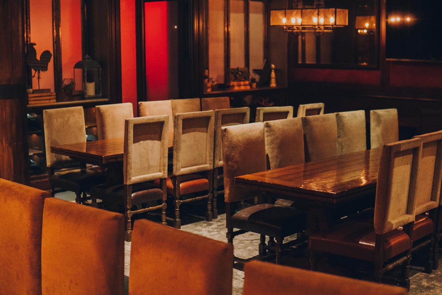 The Craft Dining Room is a comfortable semi-private space that features vintage Industrial American photography, a drop down LCD projection screen and custom trestle-style dining tables for seating up to 60 guests. The Craft Dining Room is the ideal space for hosting semi-private dinner events and can be combined and expanded to incorporate the adjoining Cask Room for groups up to 110 guests.