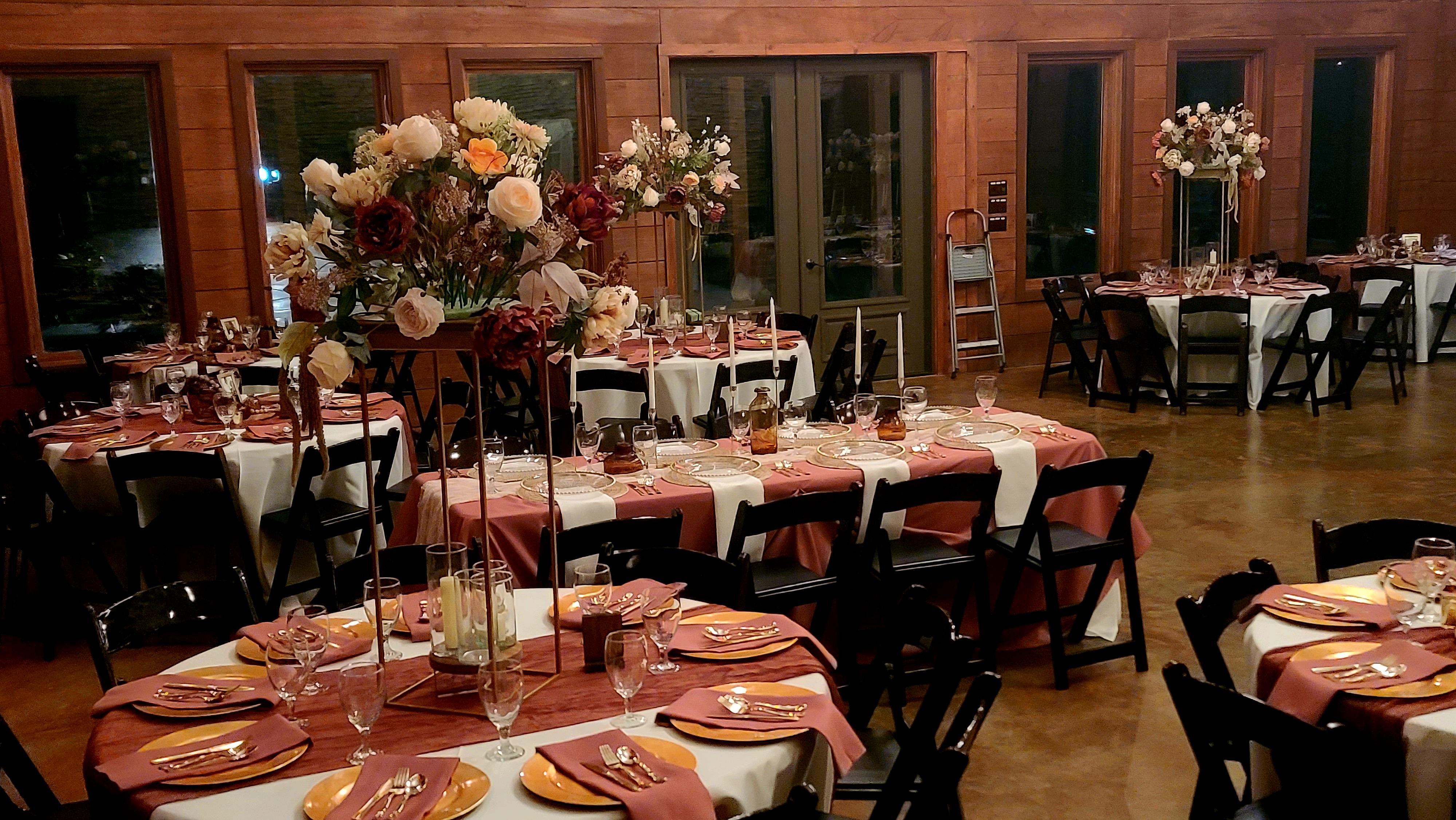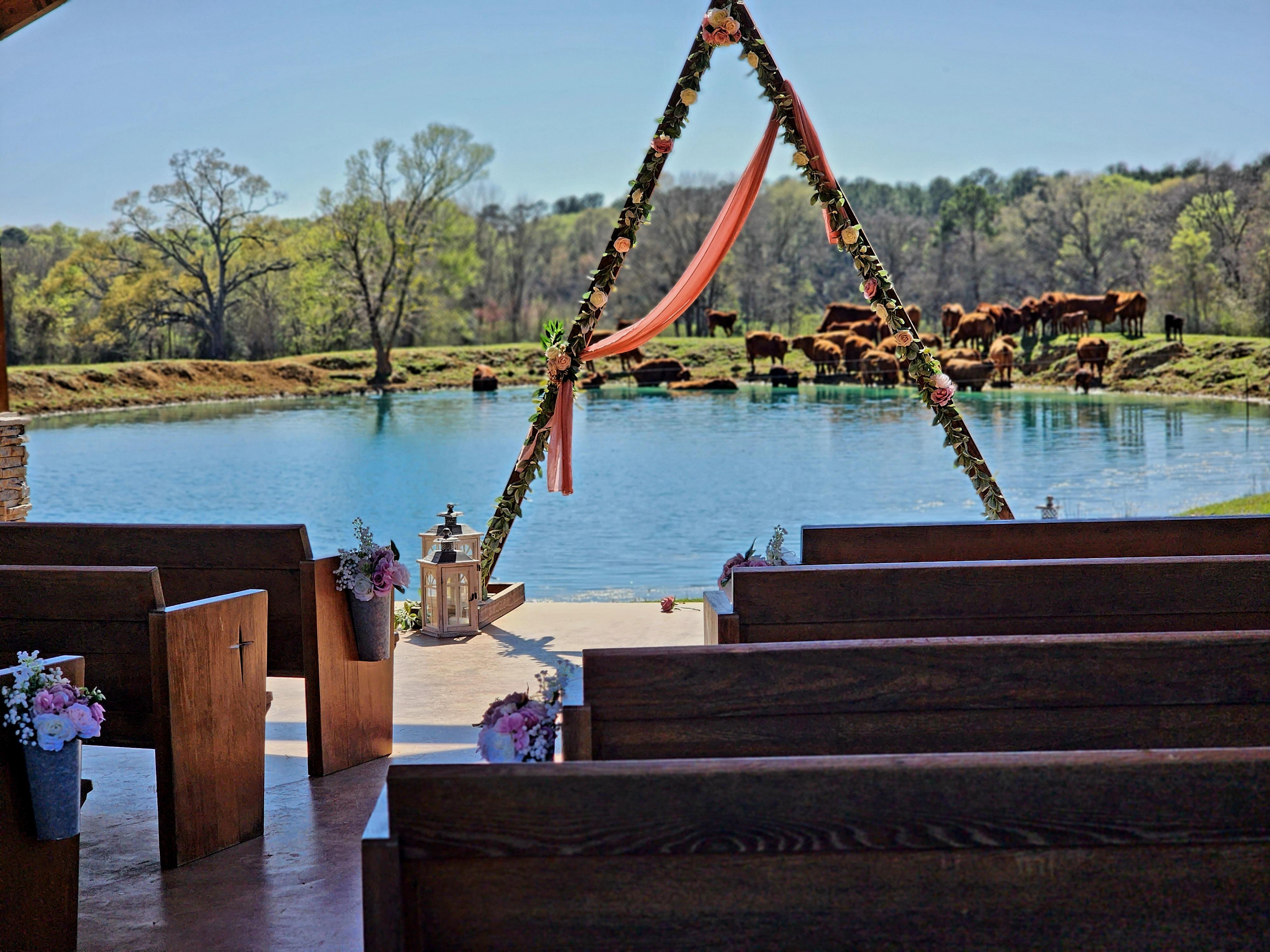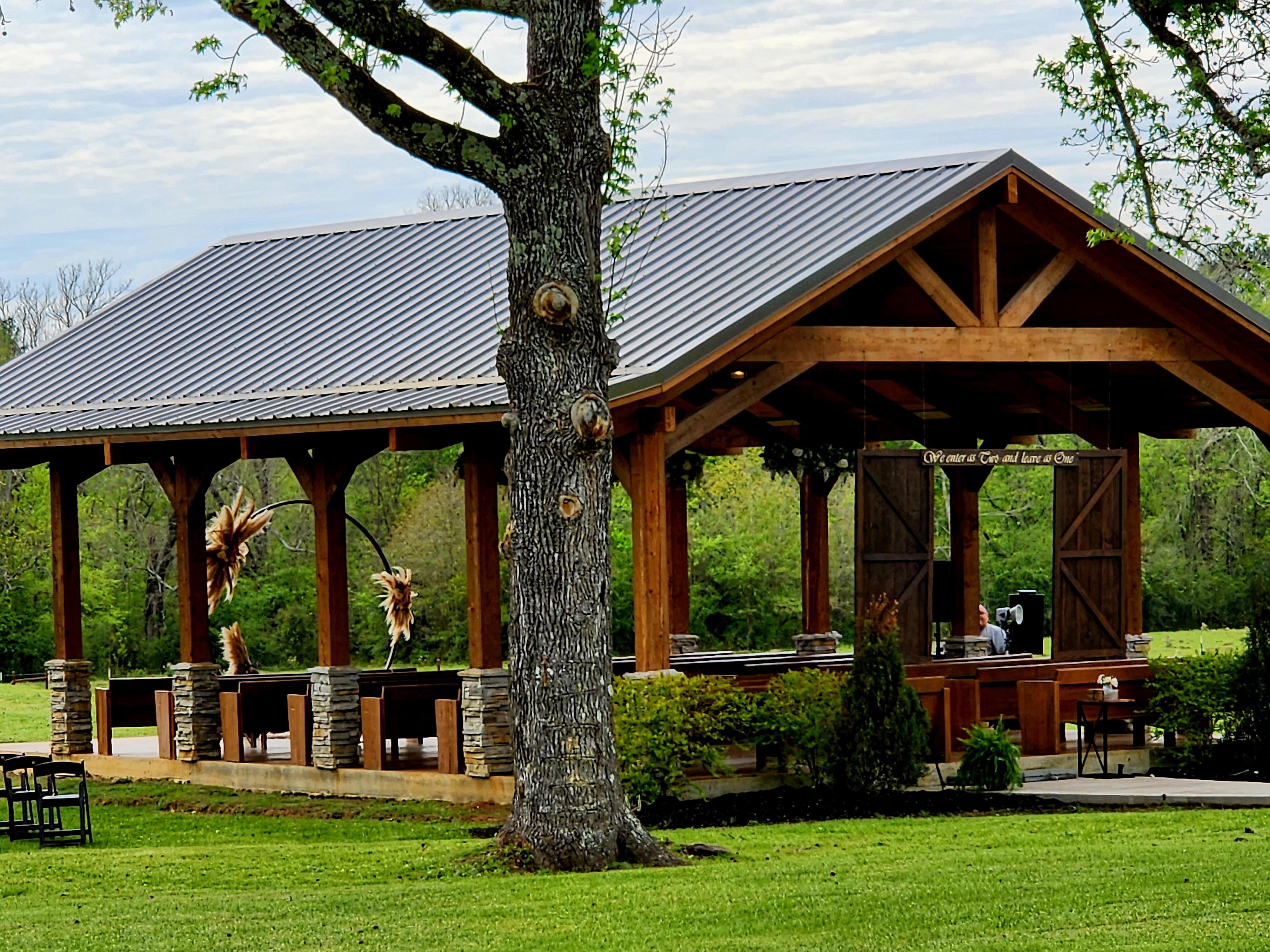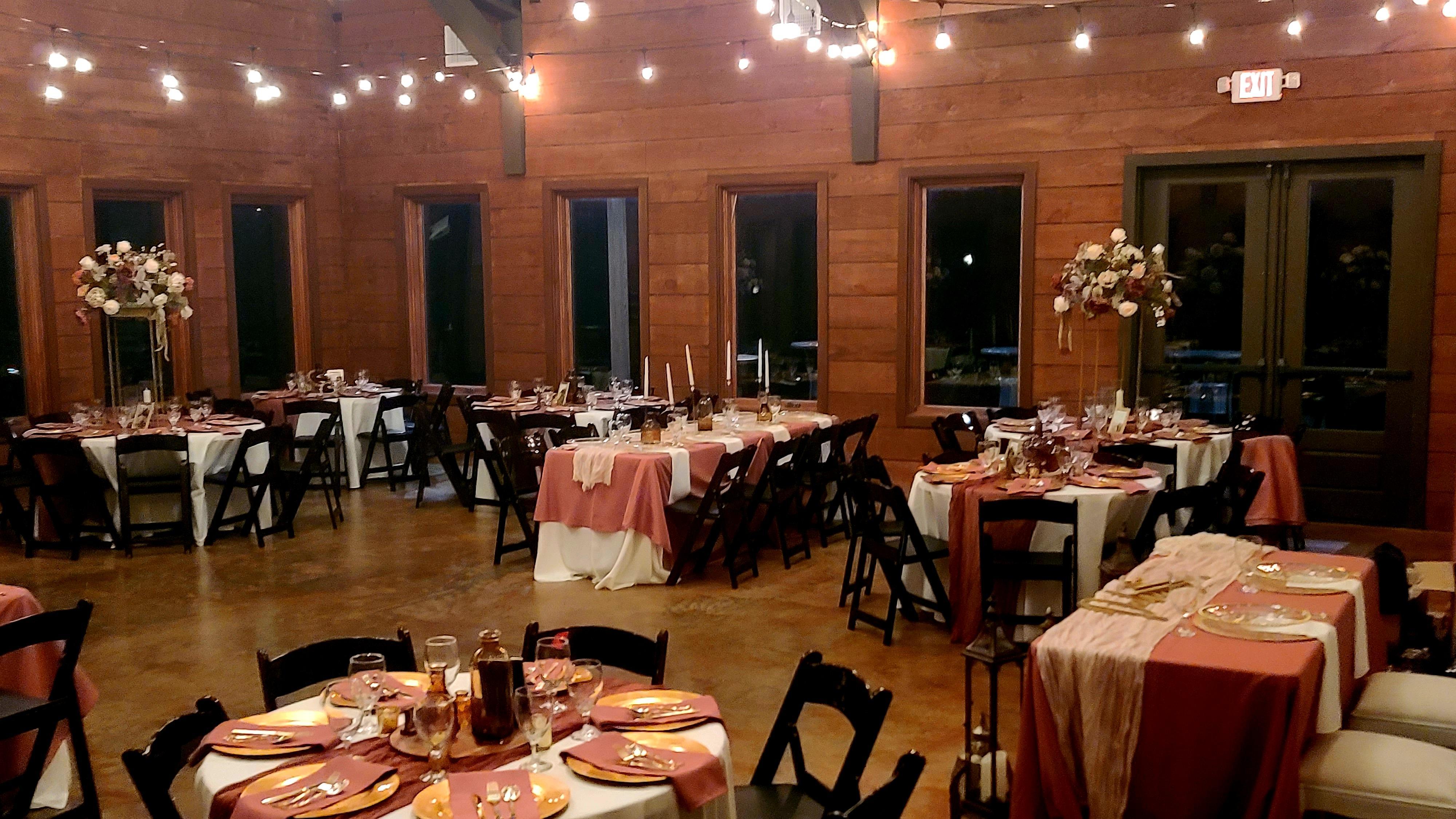 ***Included in the price of the venue: - Rustic/Elegance Venue - Indoor/Outdoor Reception Area - Catering Kitchen (No Stove) - 16' Porches on 3 sides - Outdoor Bar (with gorgeous sunsets) -Open Air Pavillion -Bridal Cottage -Grooms Den -Tables -Chairs -Tablecloths -Room of decorations -Bluetooth Sound System