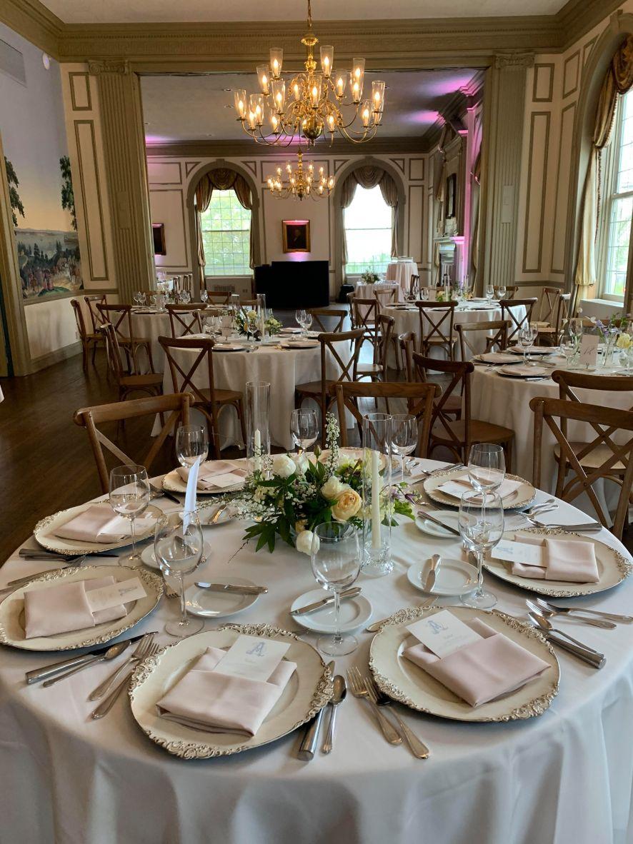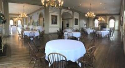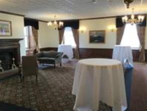 Neutral coloring-crème & taupe, mustard drapery, bright & airy, nine large windows with partial lake and park view, two fireplaces, portraits on the walls and above fireplaces. Open archway entry. Capacity (67’ x 30’) 120 people at 60-inch Banquet Rounds of Eight | 200 people Theater Style | 80 people Classroom Style | 250 people Stand-Up Cocktail Reception