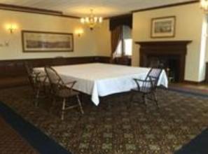 Neutral coloring – cremé & taupe, bright & airy, four large windows with neighborhood views, mustard drapery, one fireplace, Boston Tea Party mural. Capacity (30' x 23') 40 people at 60-inch Banquet Rounds of Eight | 20 people at U-Shape | 40 people Theater Style | 20 people Classroom | 50 people Stand-Up Cocktail Reception