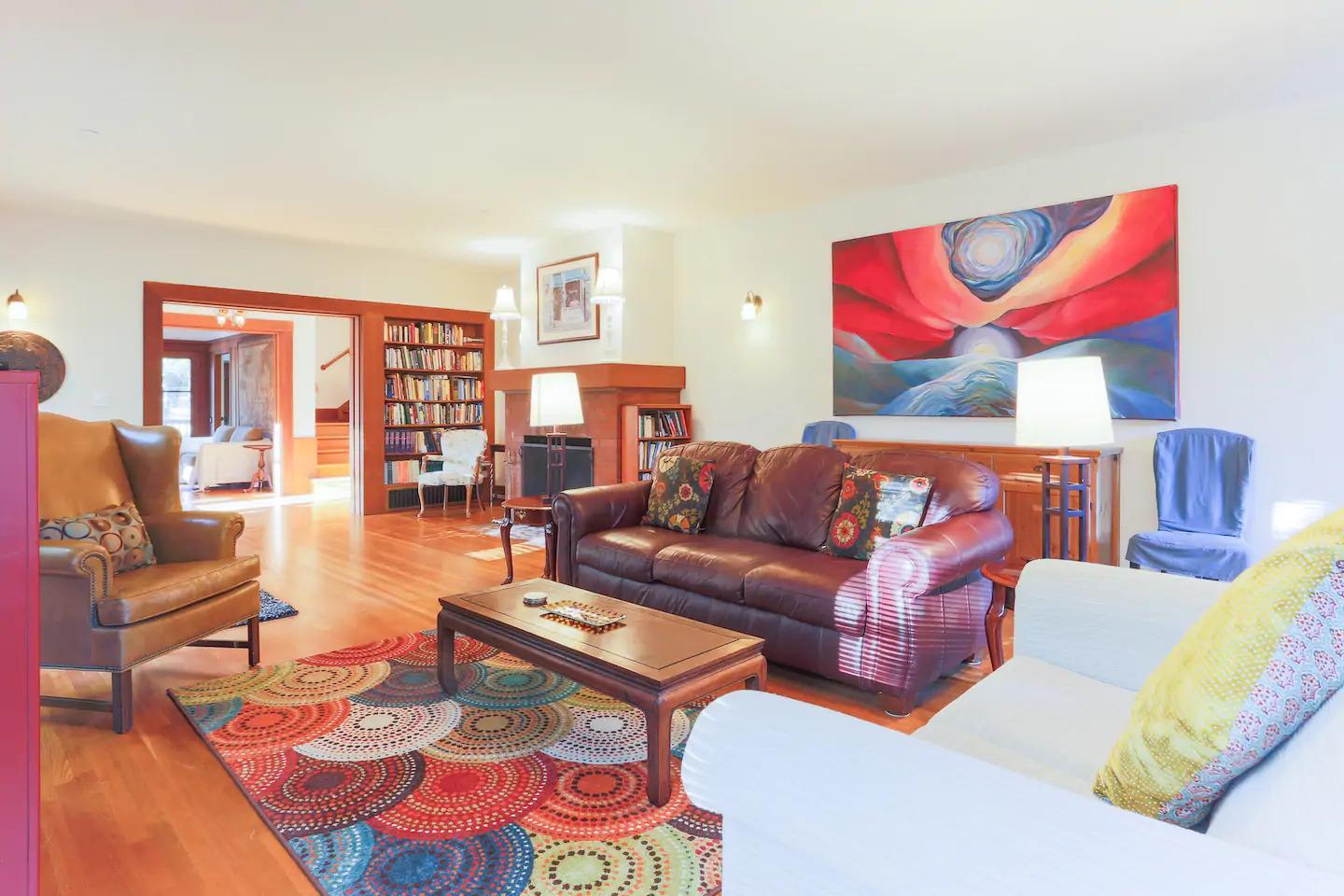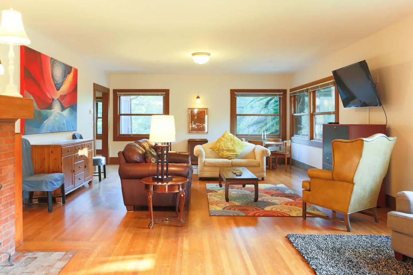 - 6 large bedrooms - 3 full baths - Fully equipped, eat-in, gourmet kitchen with 6-burner Viking range and large center island - Comfortable living room with an oversized, working fireplace - Large, formal dining room - Wireless internet access and basic cable - Large covered porch for extra seating - Check-in is at 3 p.m., and checkout is at 10 a.m. Capacity Details - Sleeps up to 14 guests - Maximum 30 guests for a standing reception or smaller gatherings for meals
