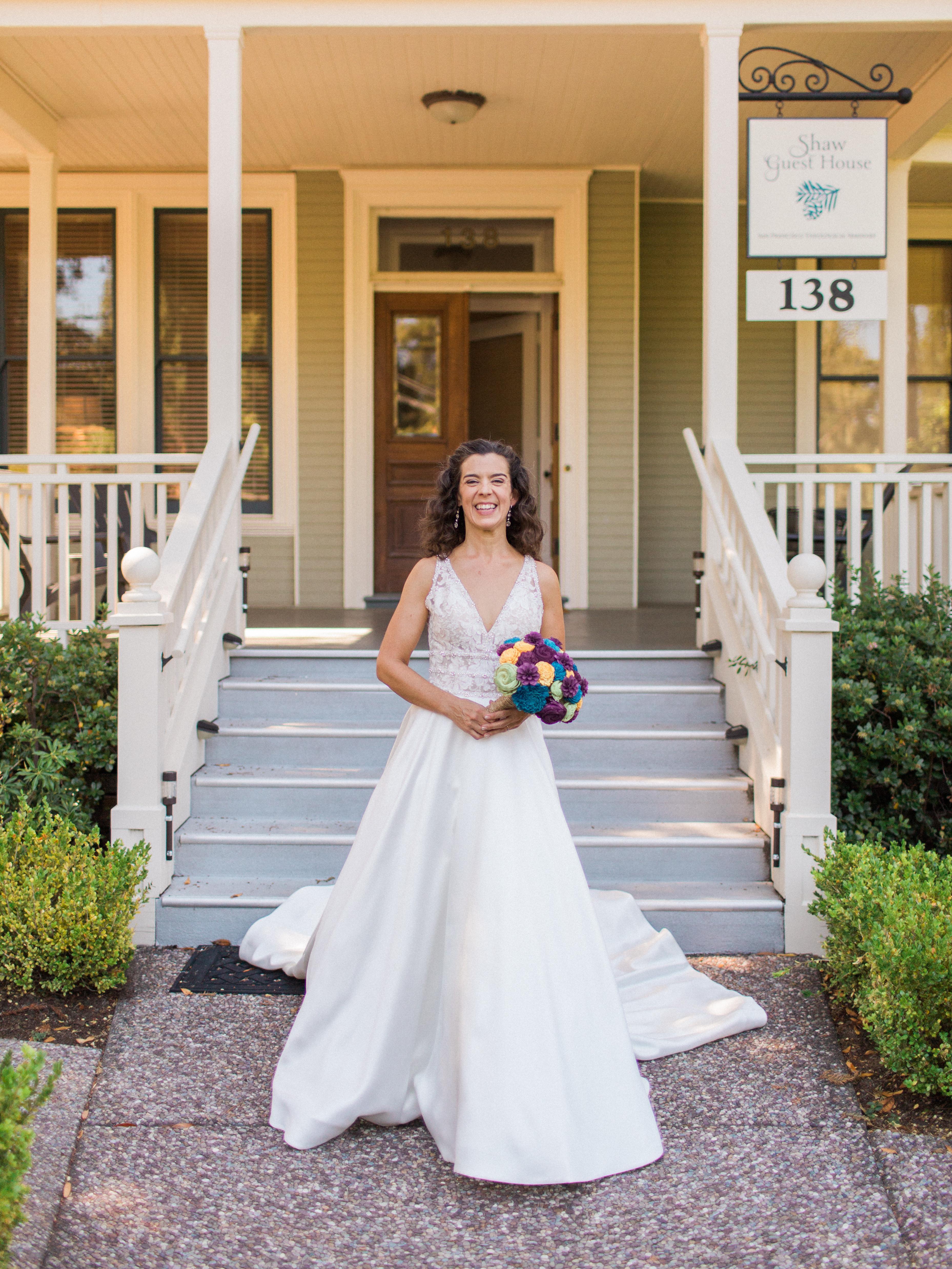 This gracious, two-story Victorian house has an expansive, eat-in kitchen for cooking meals with family and friends. The living room opens to a large, formal dining room, creating the perfect space to gather, and an expansive front porch for socializing. Shaw Guest House is a favorite for the bride and her bridal party to get ready on the wedding day. The beautiful home is a wonderful space to host your wedding shower, bridal party, out of town guest, and farewell brunch.