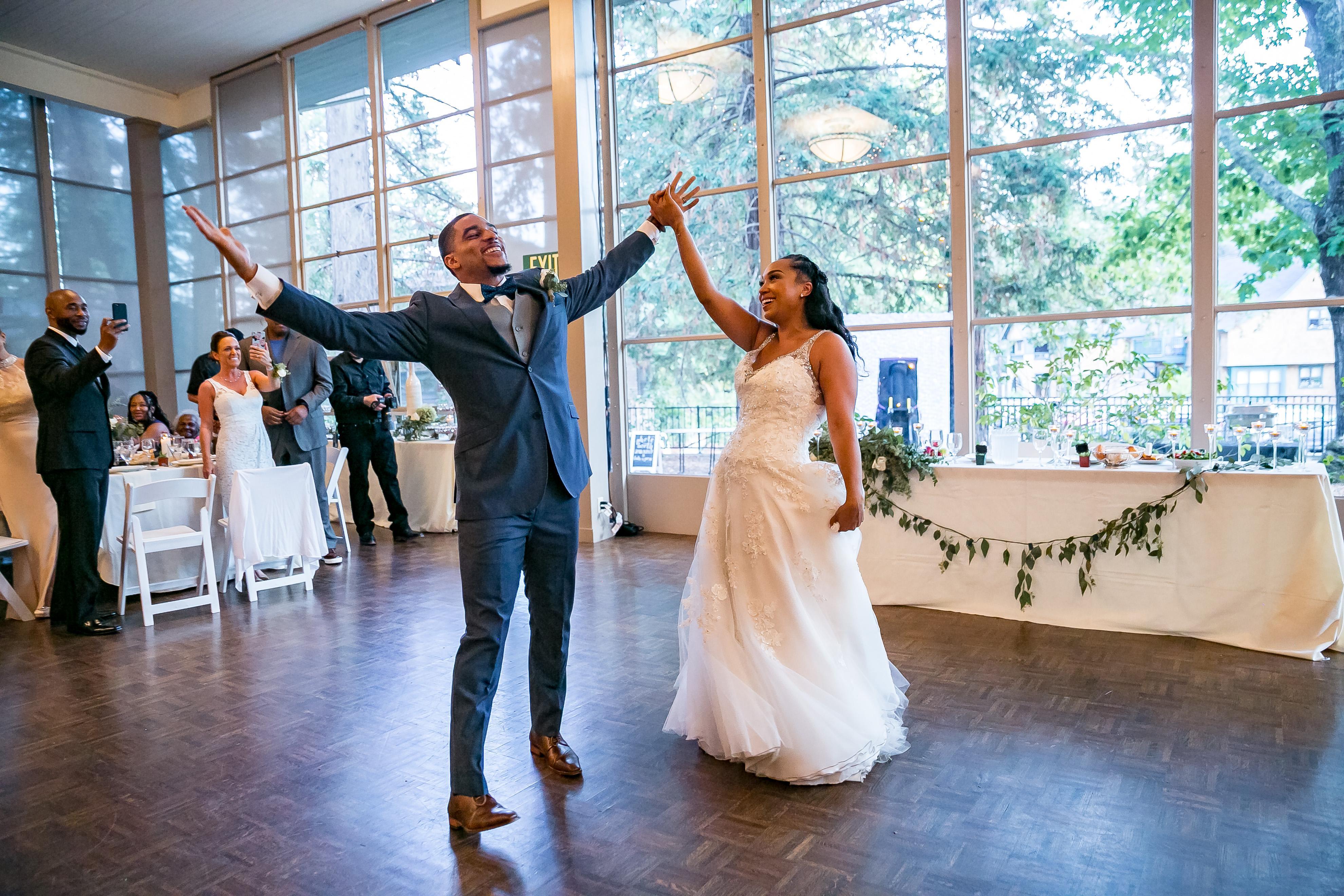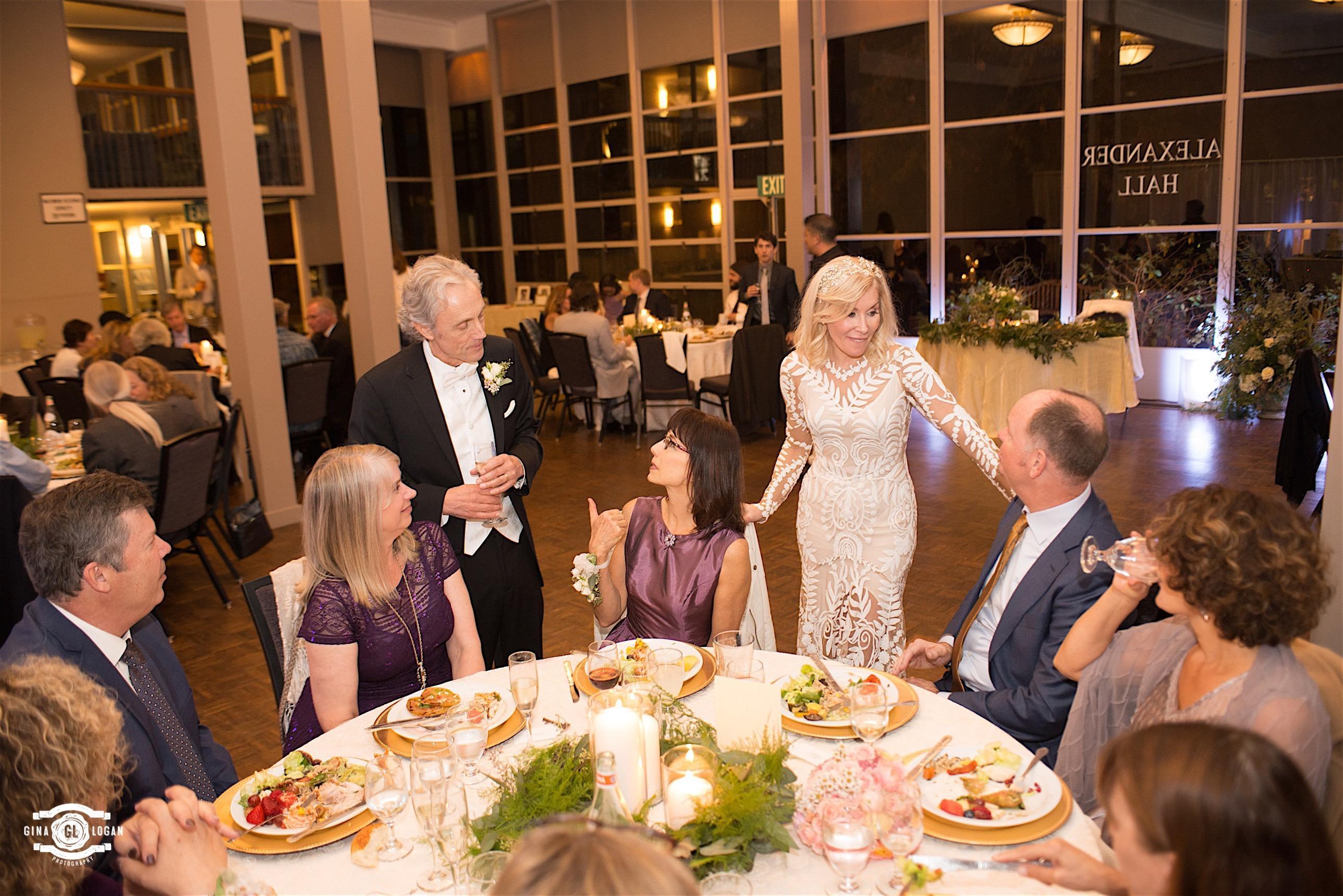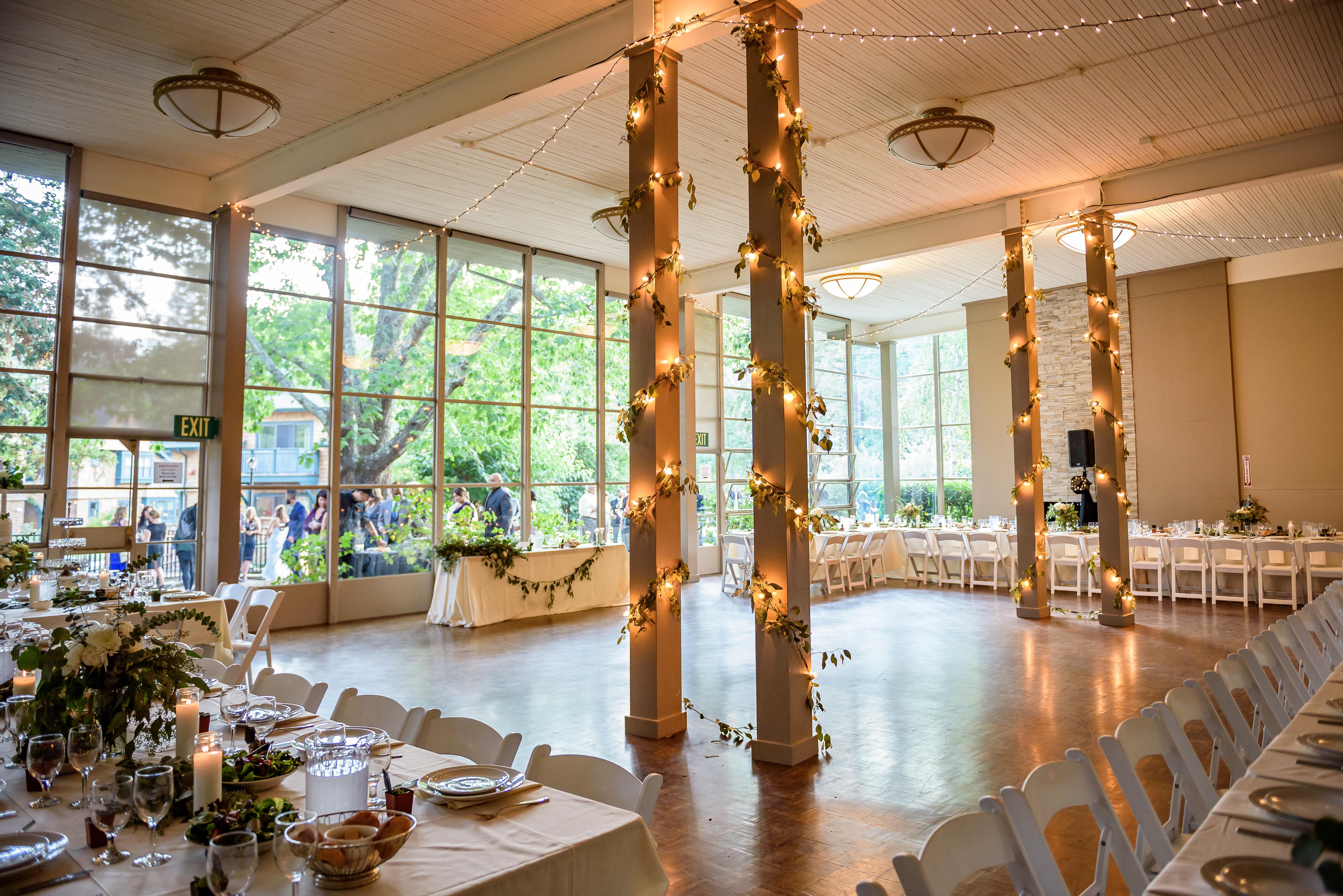 Alexander Hall is a versatile venue with 15-foot ceilings and a beautiful oversized fireplace. Overlooking the shaded Redwood Terrace this space offers a panoramic view through a wall of windows. Perfect for wedding receptions.