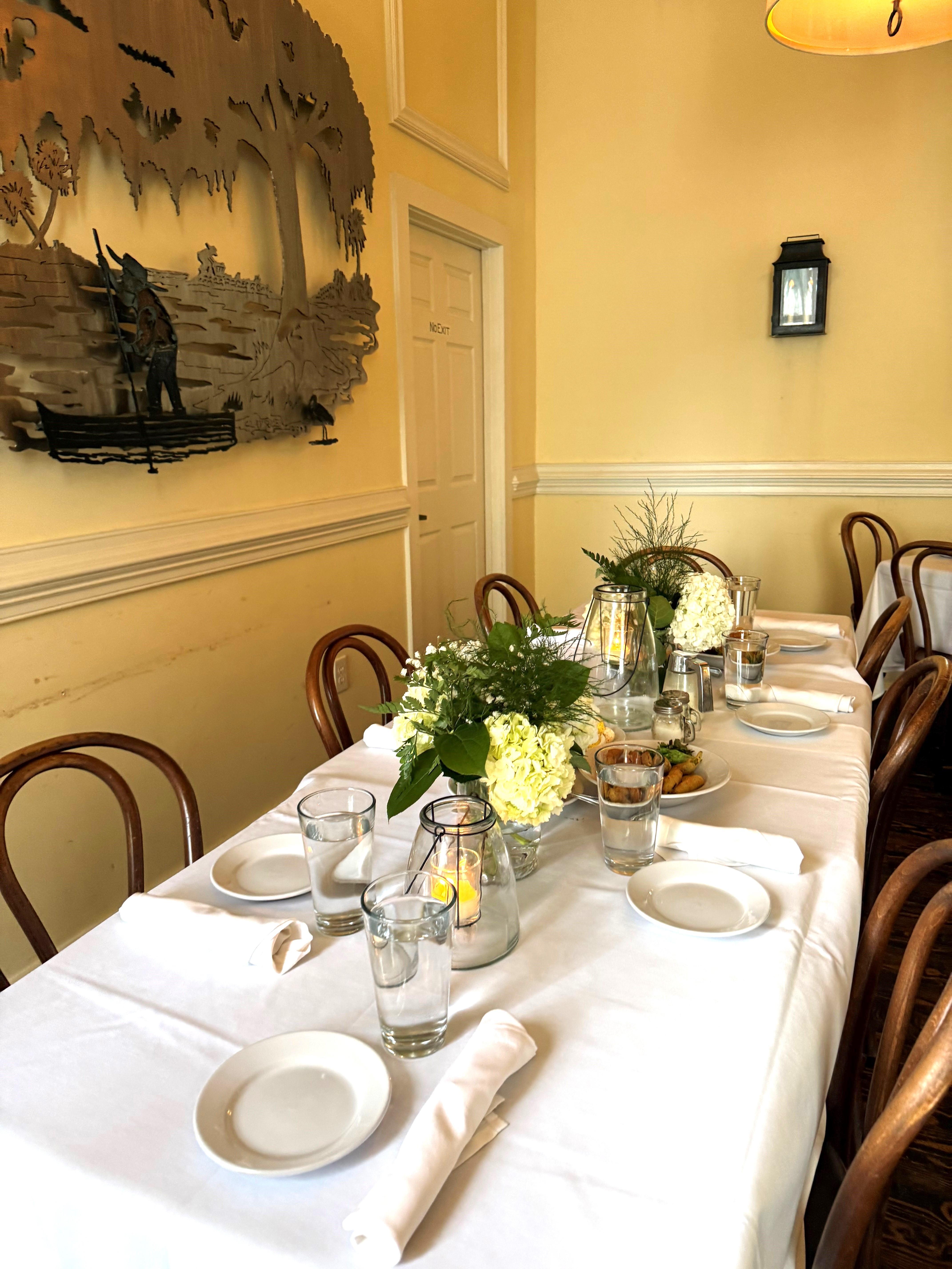 The Upstairs at Virginia’s dining room is completely separated from the downstairs dining room. Purposely designed to host small receptions, corporate events, rehearsal dinners and bridal luncheons, Upstairs at Virginia’s is your ideal local for your special occasion! Classic Charleston influenced interior and the aromas of home cooking inspire all of the comforts of a traditional Southern kitchen, the perfect setting for hosting any of your events. At the heart of Virginia’s you will find gracious southern hospitality along with all of the flavors of the Lowcountry.