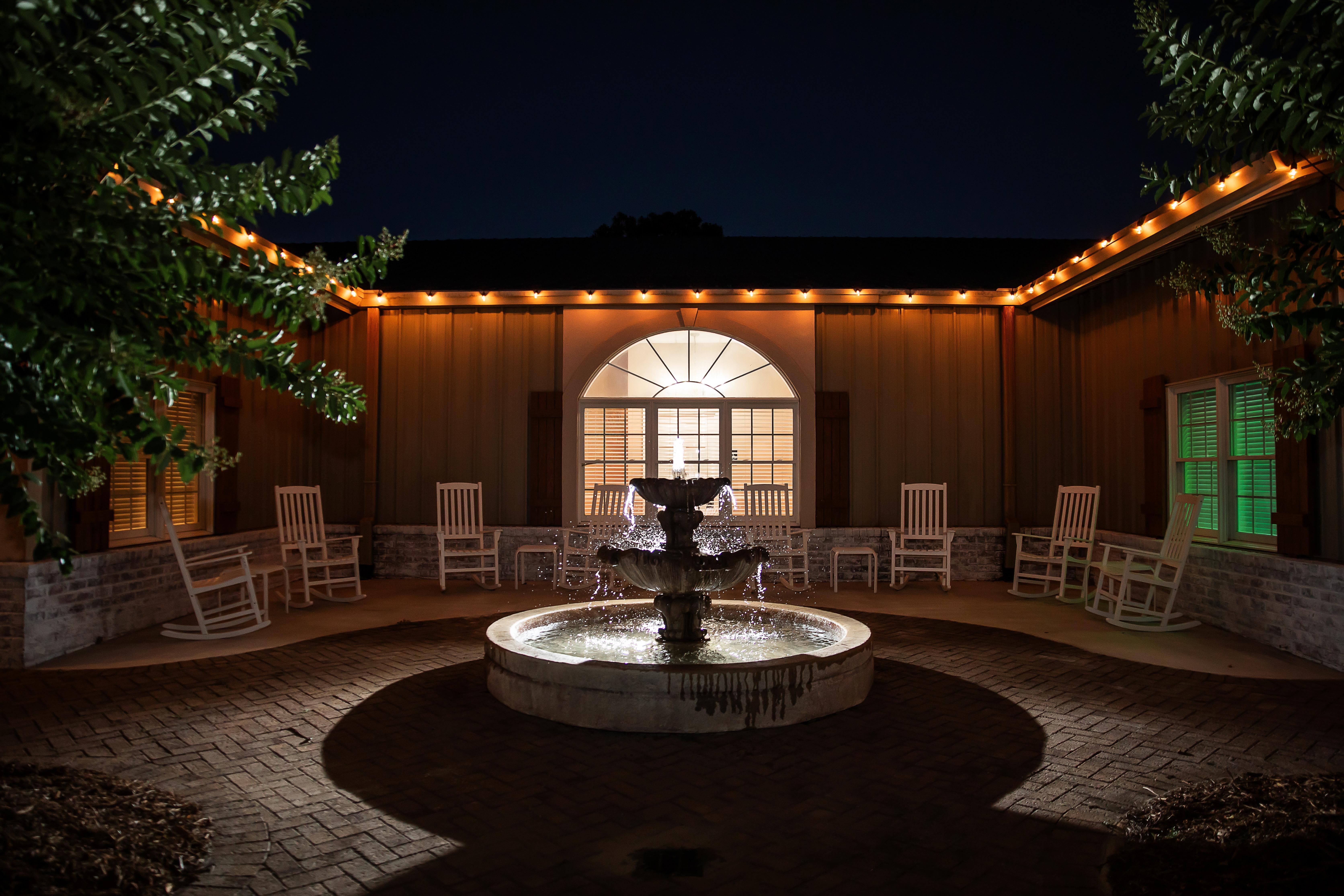 The Courtyard is our charming outdoor patio, perfect for an intimate and inviting cocktail hour. With wrought iron tables, shaded umbrellas, and the gentle sound of a nearby fountain, it’s a lovely space for your guests to sip, mingle, and enjoy the meaningful moments between your ceremony and reception.