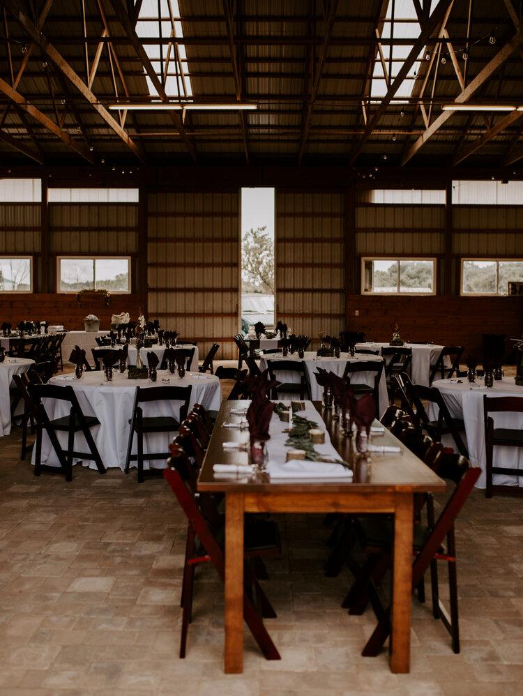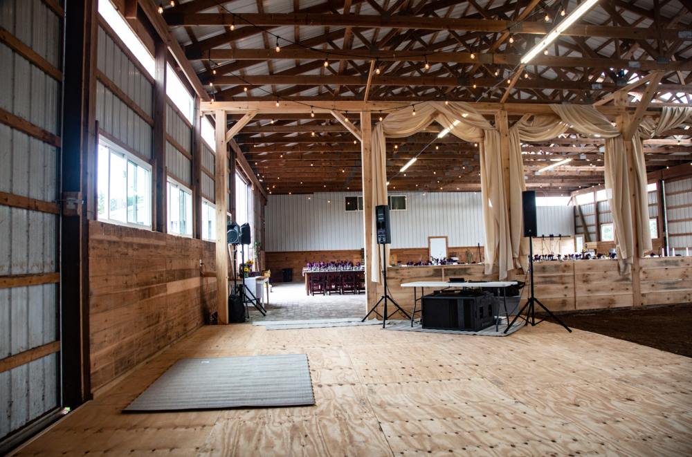 -Bar area -Buffet area -Dance floor -String lights -Beautiful wooden farm tables, round tables, and seating -Accessible men's and women's restrooms
