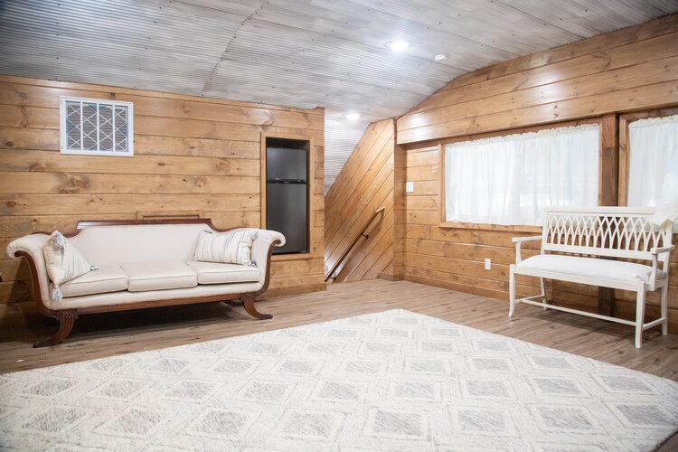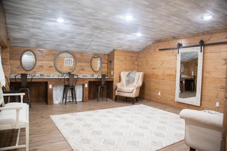 Our private loft is the perfect place for the bridal party to prepare and relax on the wedding day. With a large vanity and sink, beverage cooler, wall mirrors, couch, private restroom, heat and a/c, and a window view over the reception area, it is sure to exceed your expectations.
