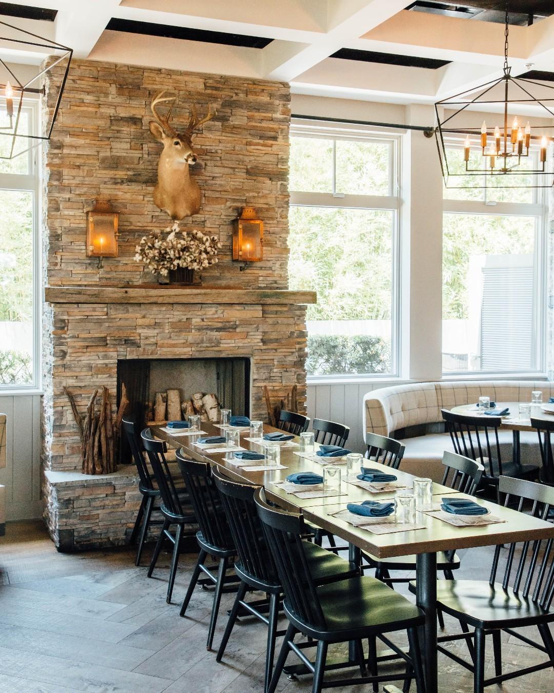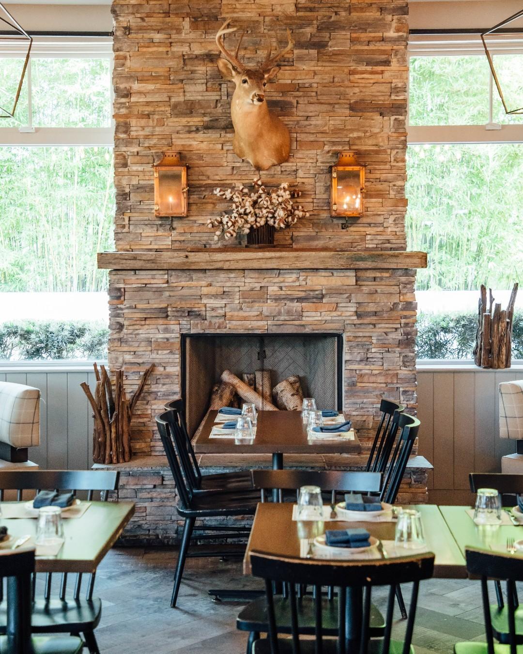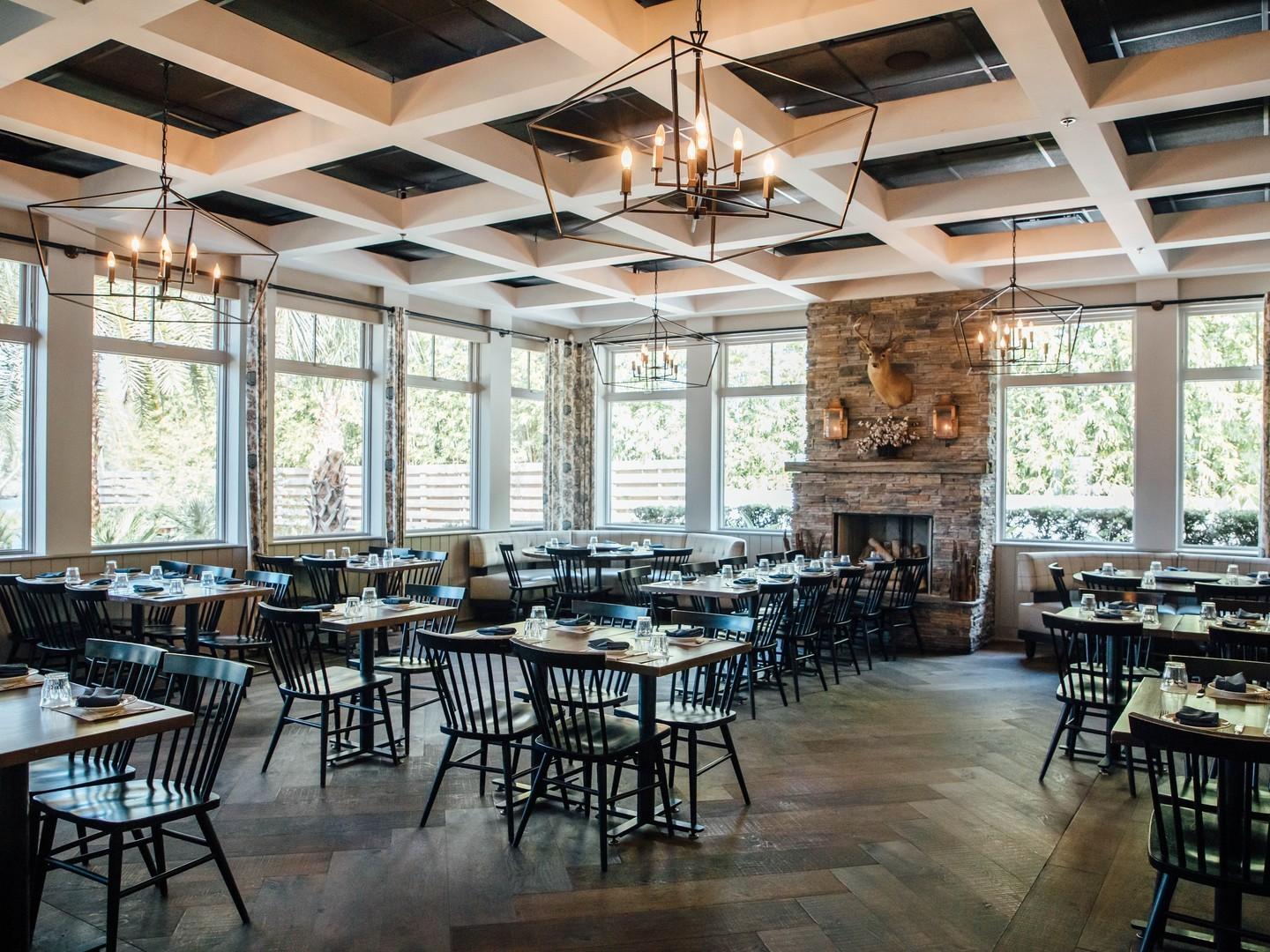 Featuring a grand stone fireplace, floor-to-ceiling windows, and rustic-chic finishes, this light-filled space brings the romance of Southern hospitality to life. Natural textures, custom woodwork, and modern chandeliers create a sophisticated yet comfortable ambiance, while the panoramic views of lush greenery and the Intracoastal backdrop add a touch of serenity.