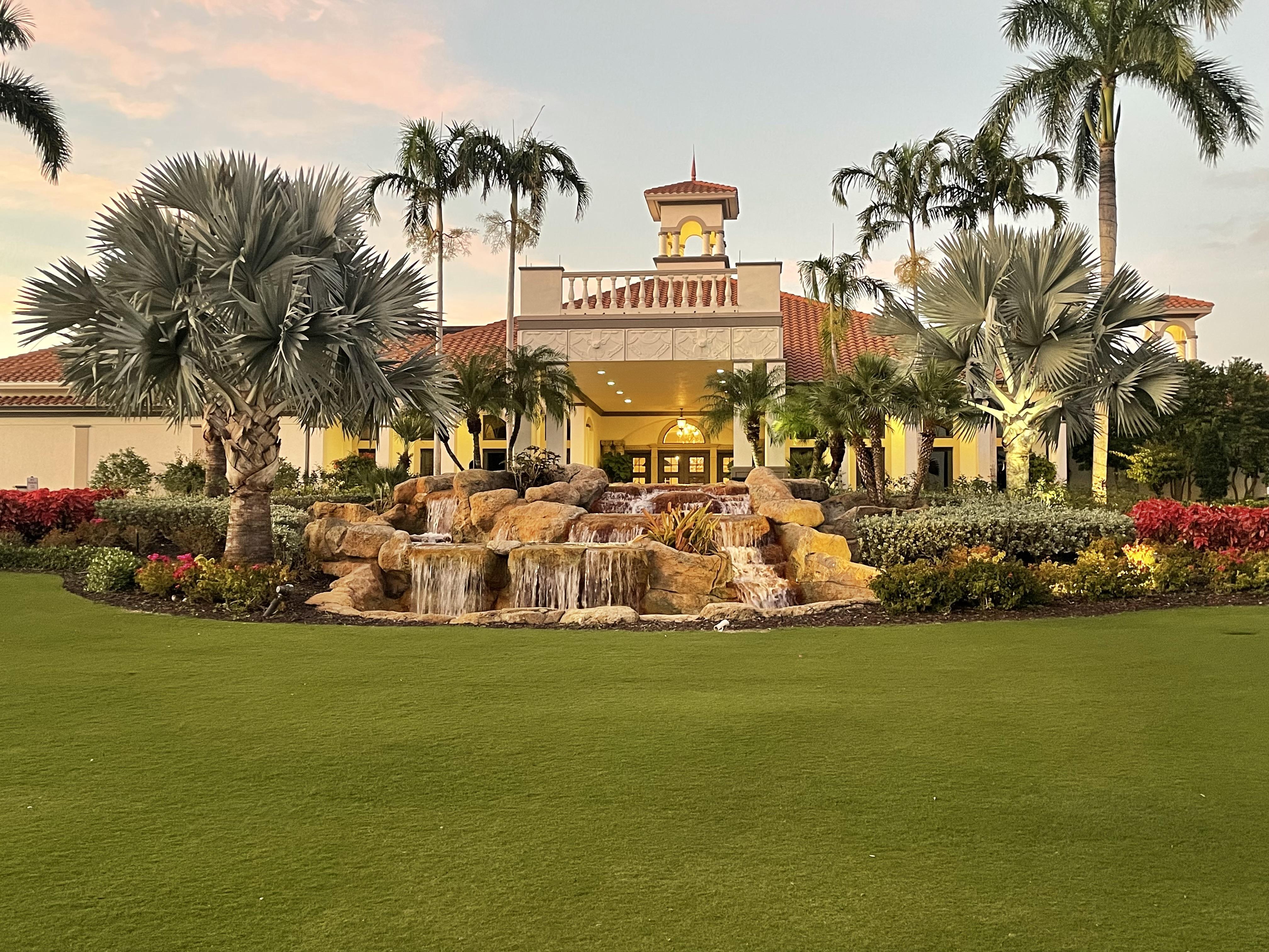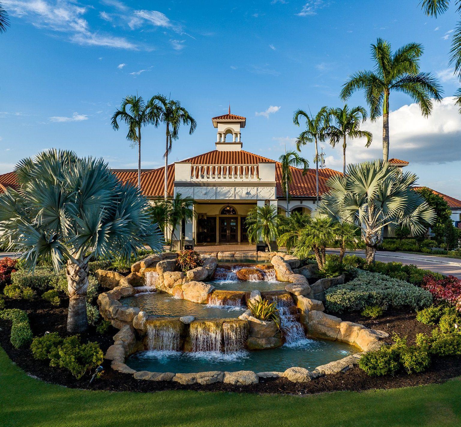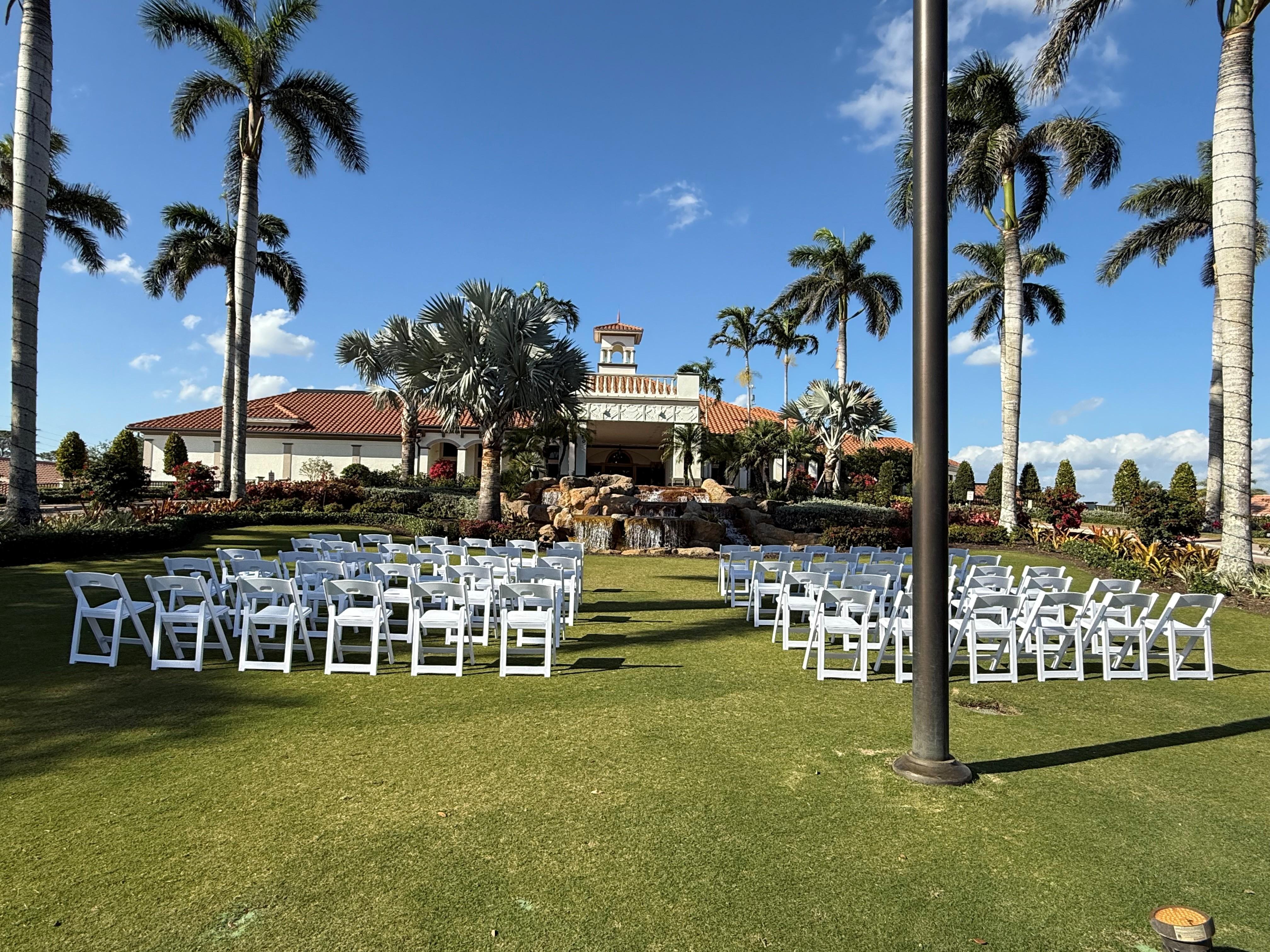The spectacular two-story Mediterranean style clubhouse with its exceptional lake views of the golf course with bridges and fountains can accommodate events up to 150 guests.