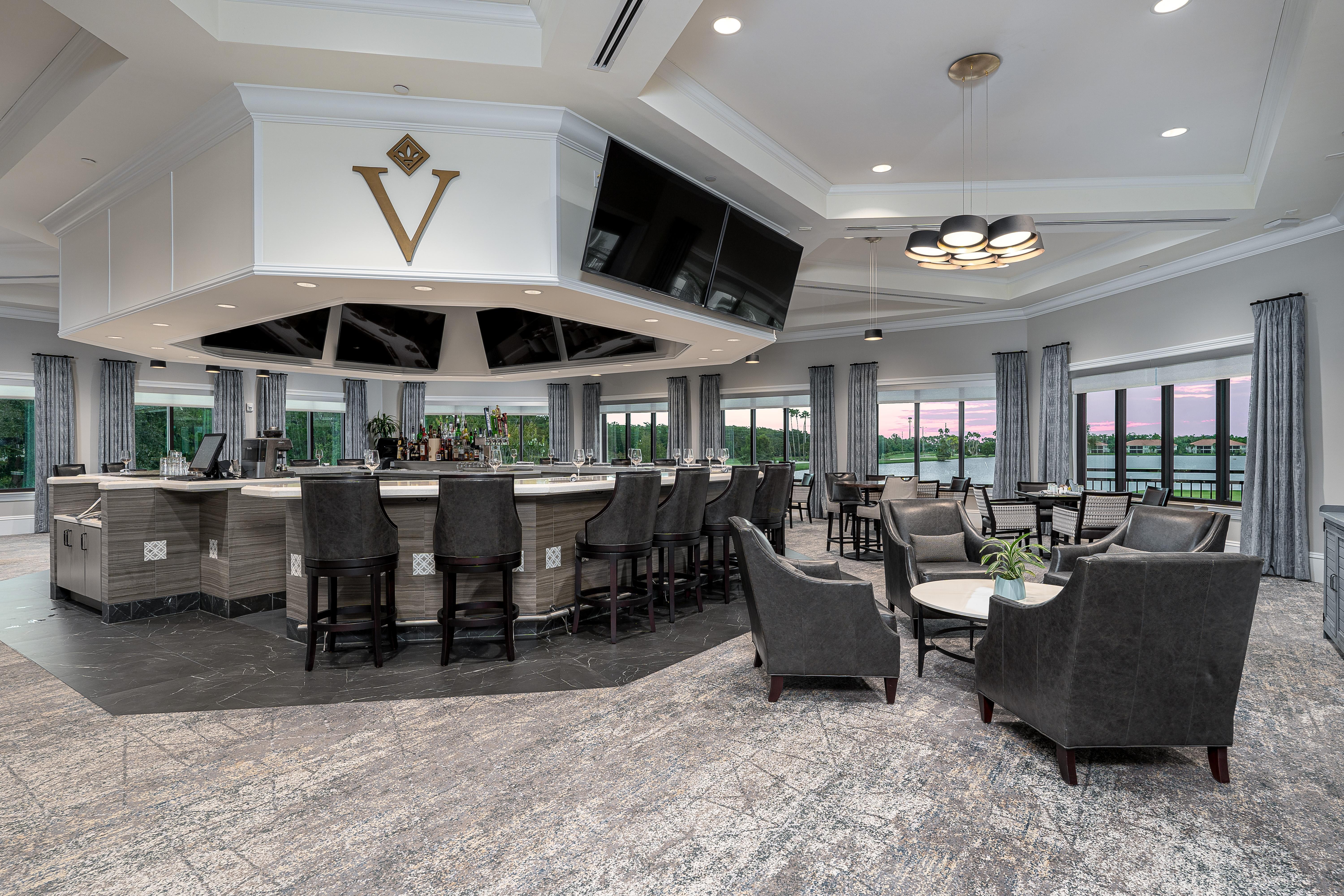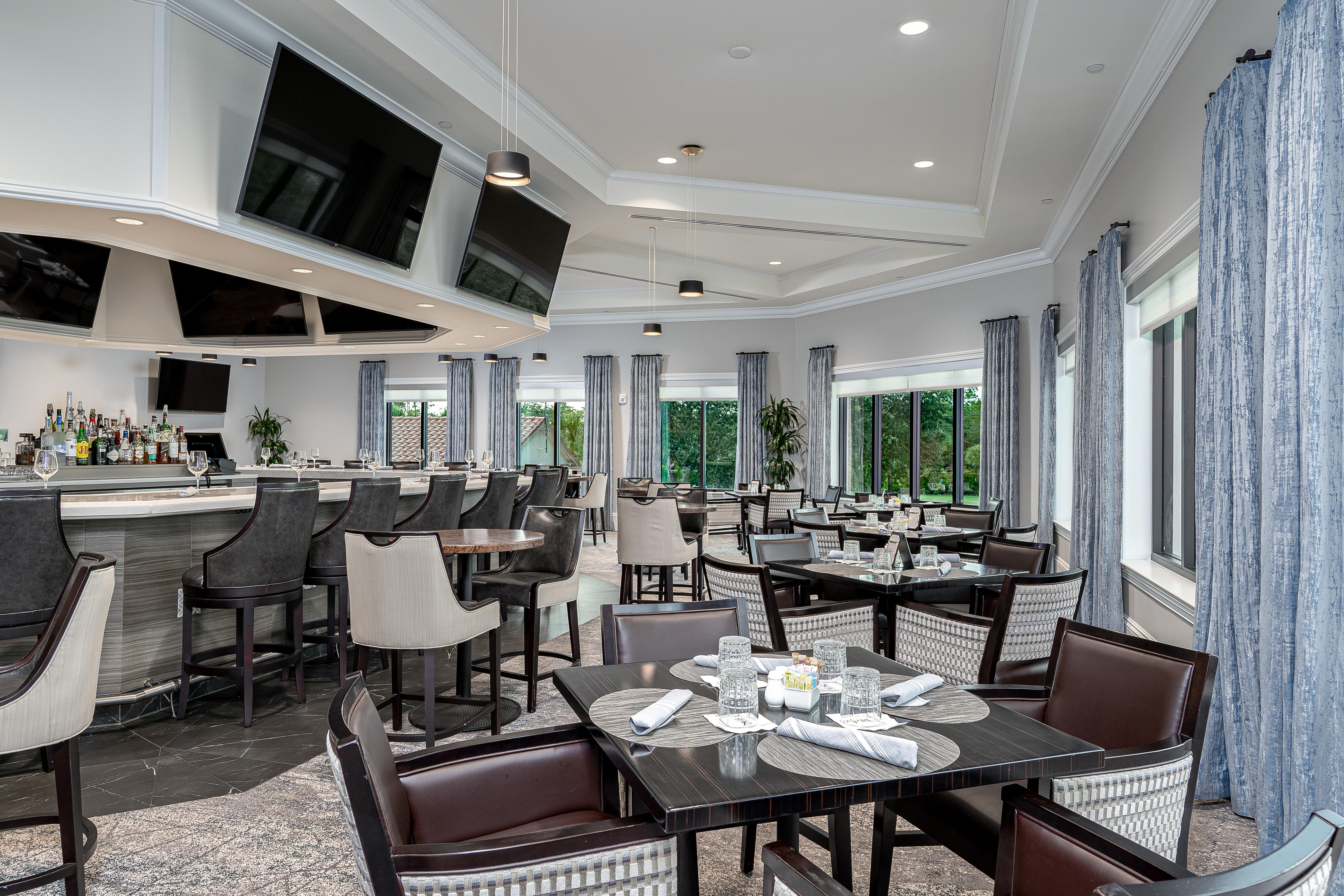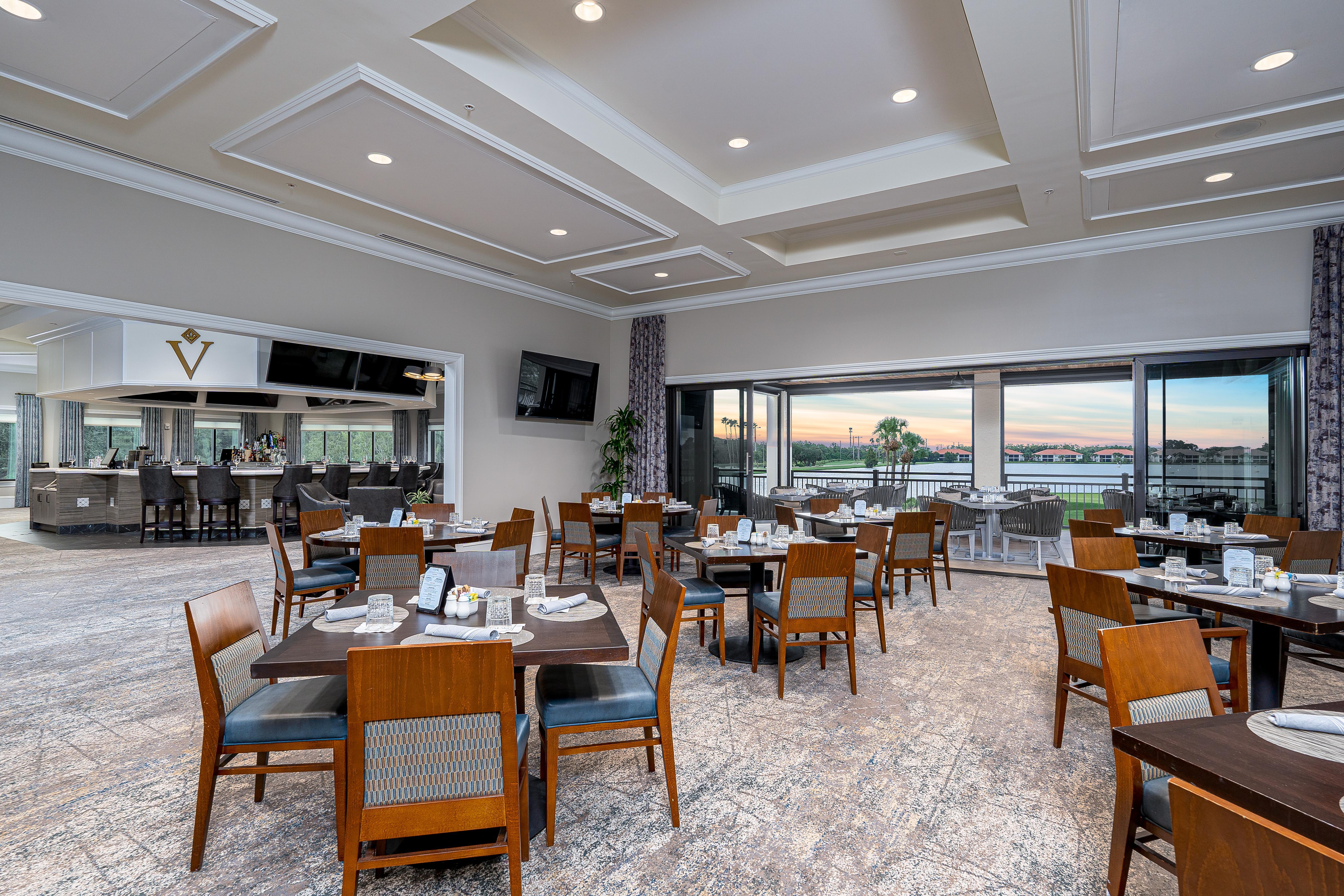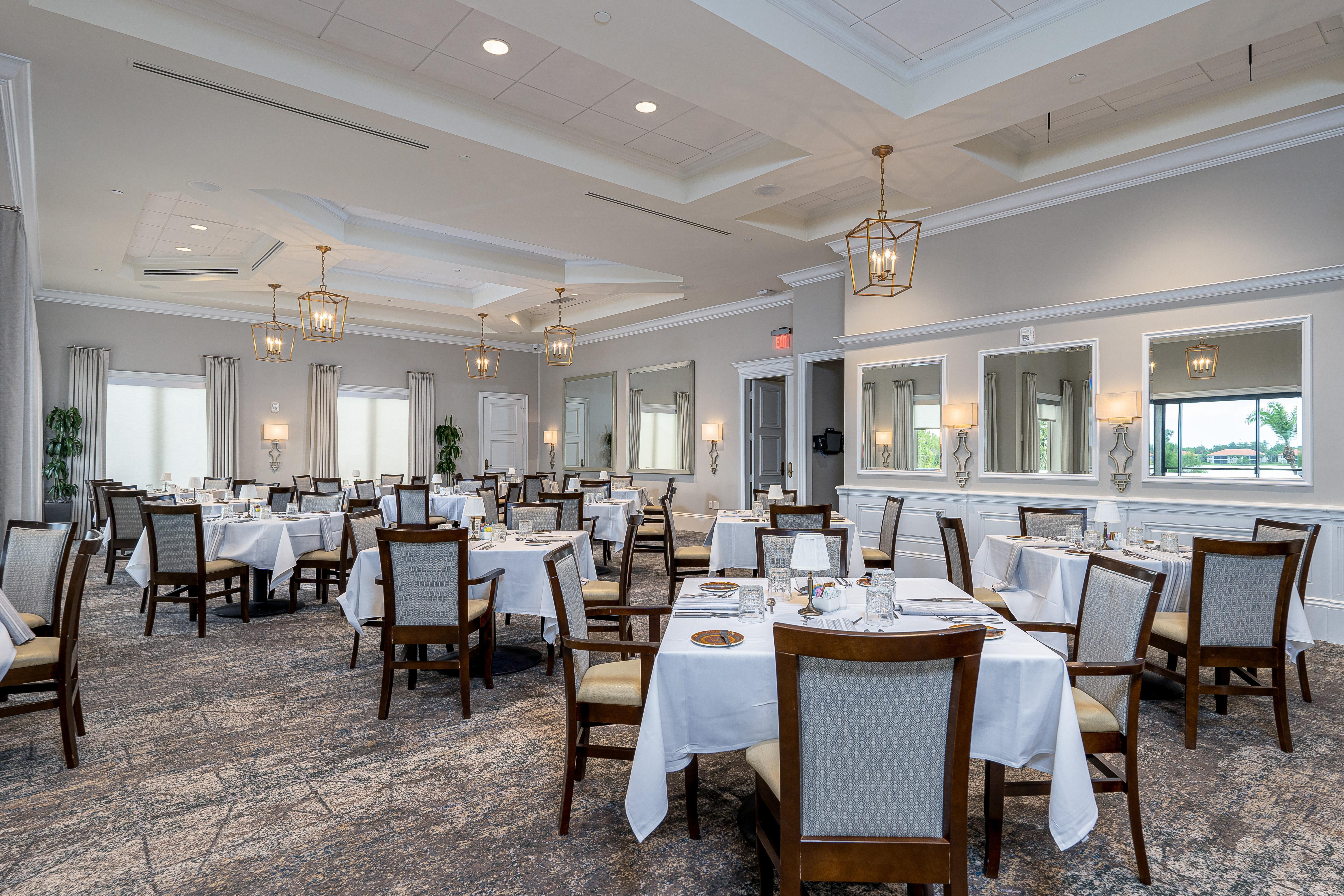 The spectacular two-story Mediterranean style clubhouse with its exceptional lake views of the golf course with bridges and fountains can accommodate events up to 150 guests.