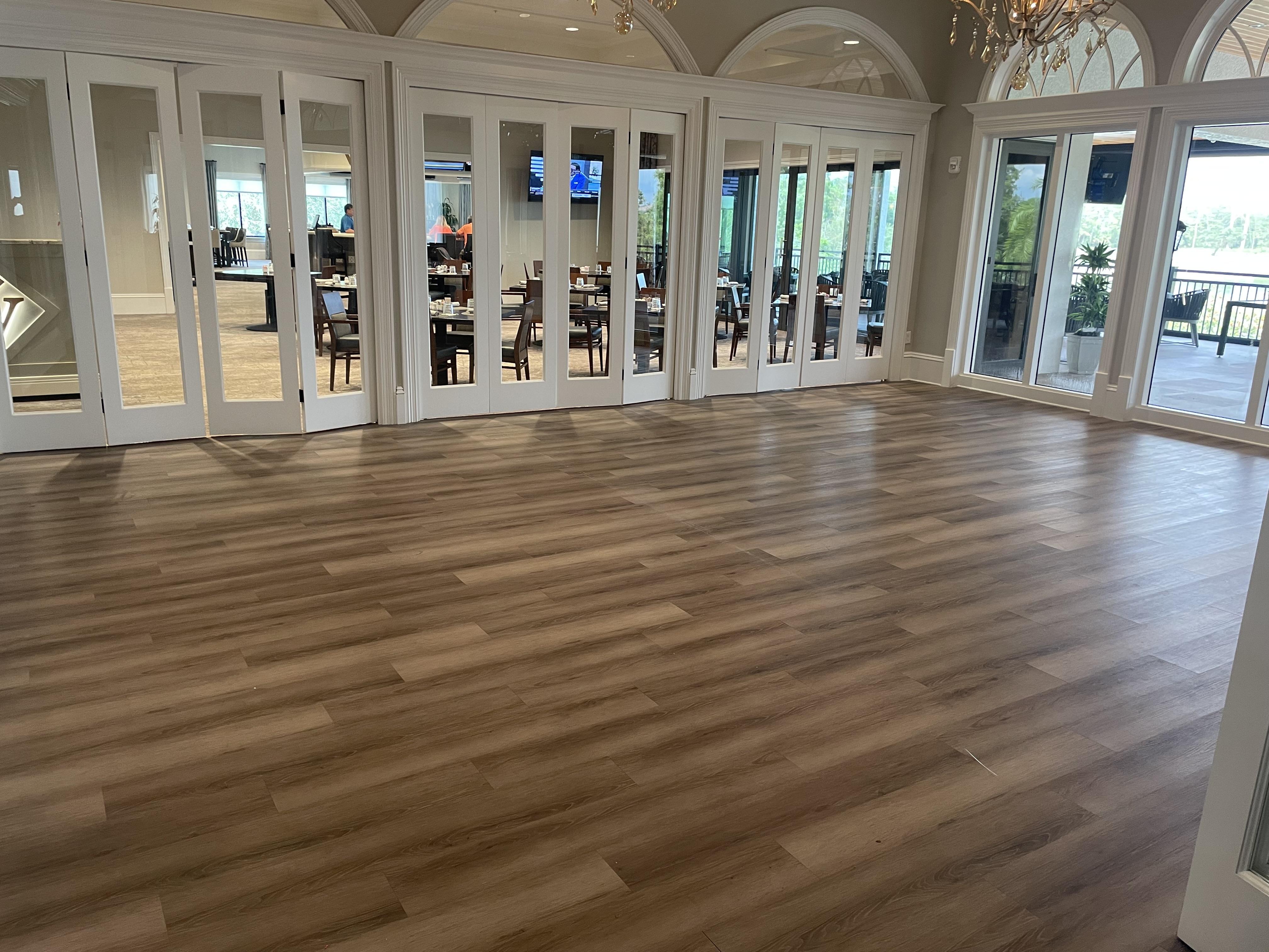 This is our built-in dance floor. Depending on the number of guests, the dance floor will either be in the middle of the room or off to the side. If you have 150 guests, the dance floor will be in between two rooms, however if you only have 95 guests, the dance floor will be off to the left side of the main room.