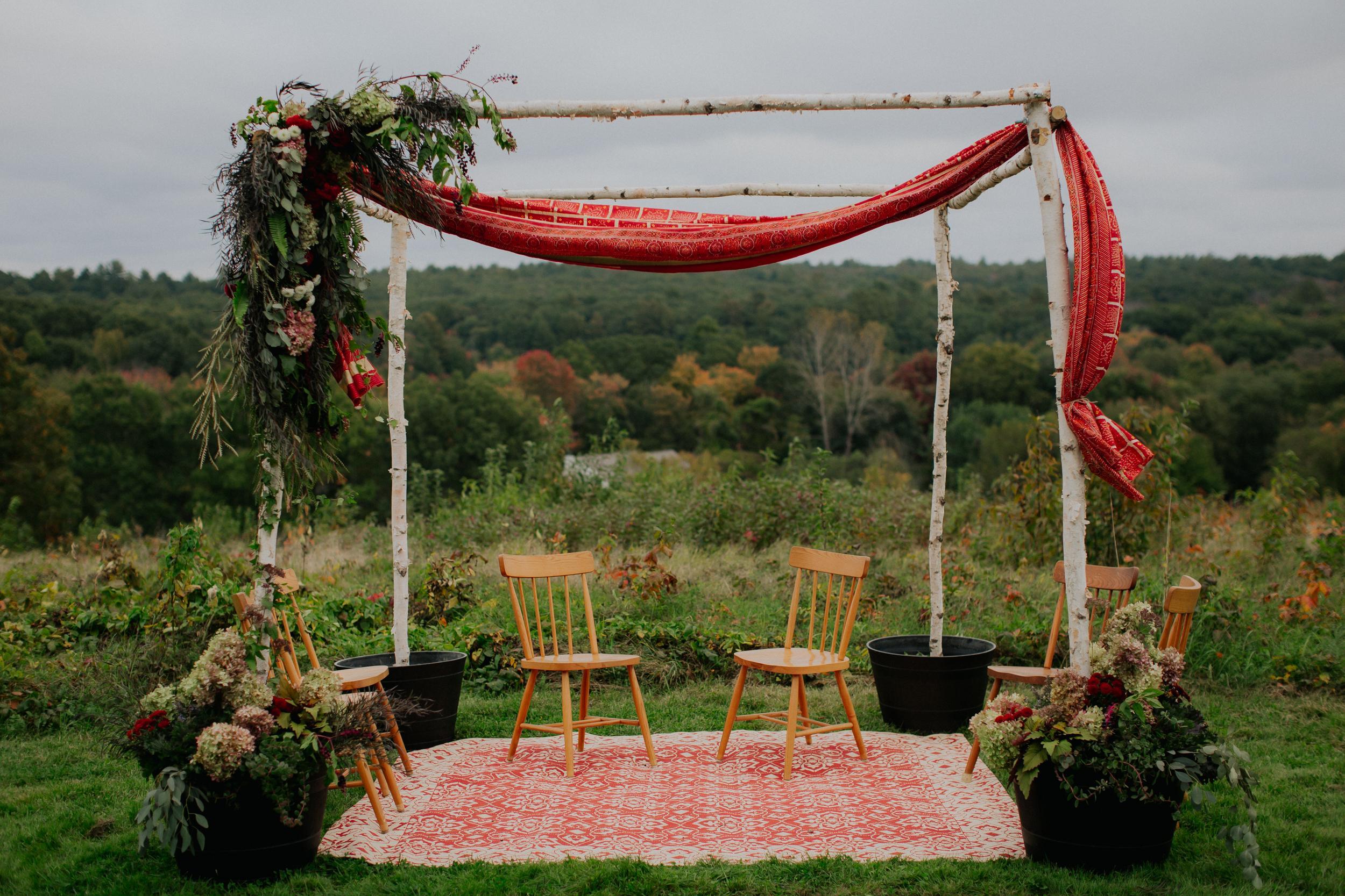 Our popular ceremony space is on the top of the hill overlooking 20 acres of conservation land. It has the perfect backdrop for a scenic ceremony or reception.