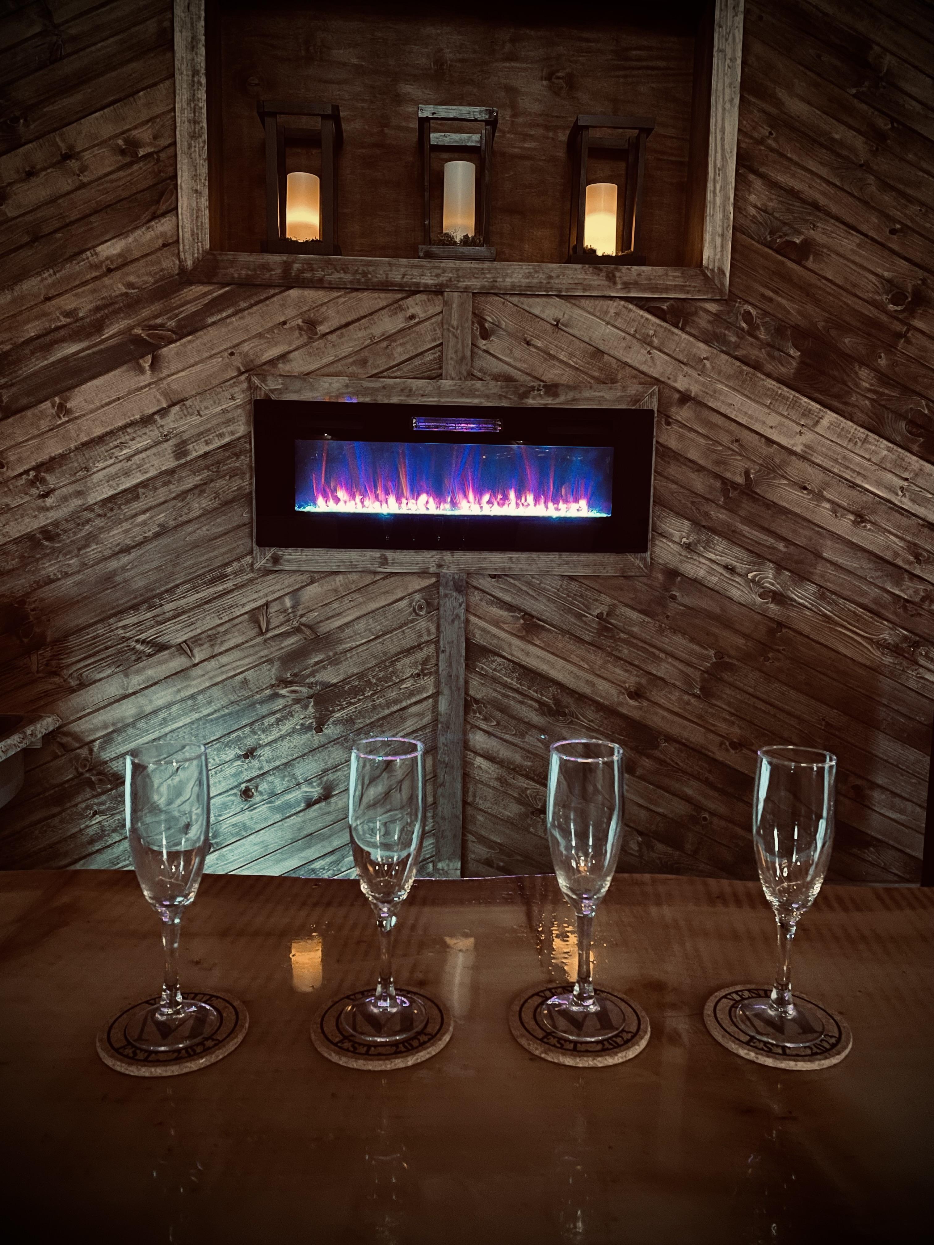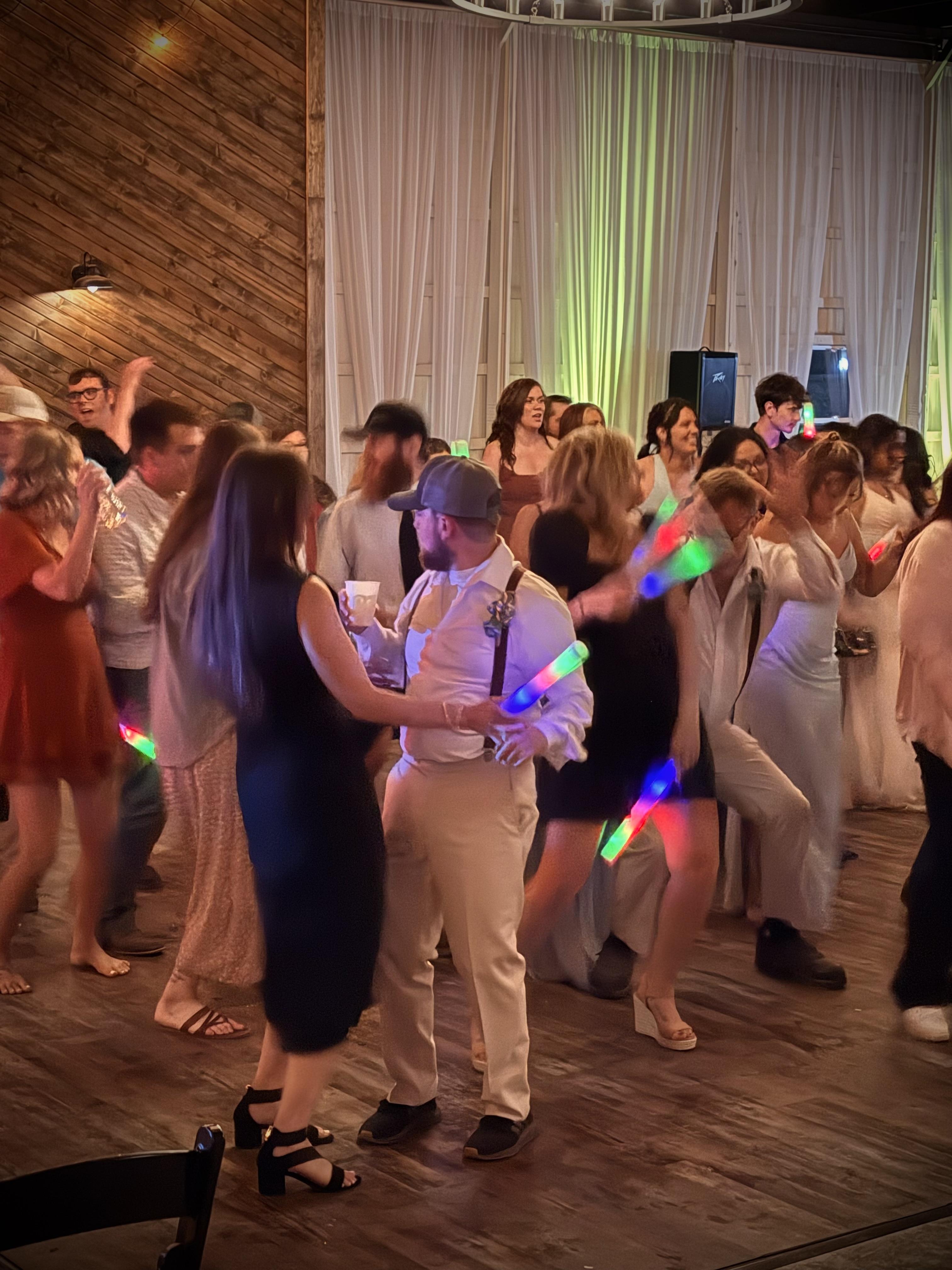 -Large dimmable chandeliers -Tables -Linens -Chairs -Photo greenery wall (customizable) -Restrooms -Patio access -Bar area (coolers and kegerator) -Champagne wall rental optional