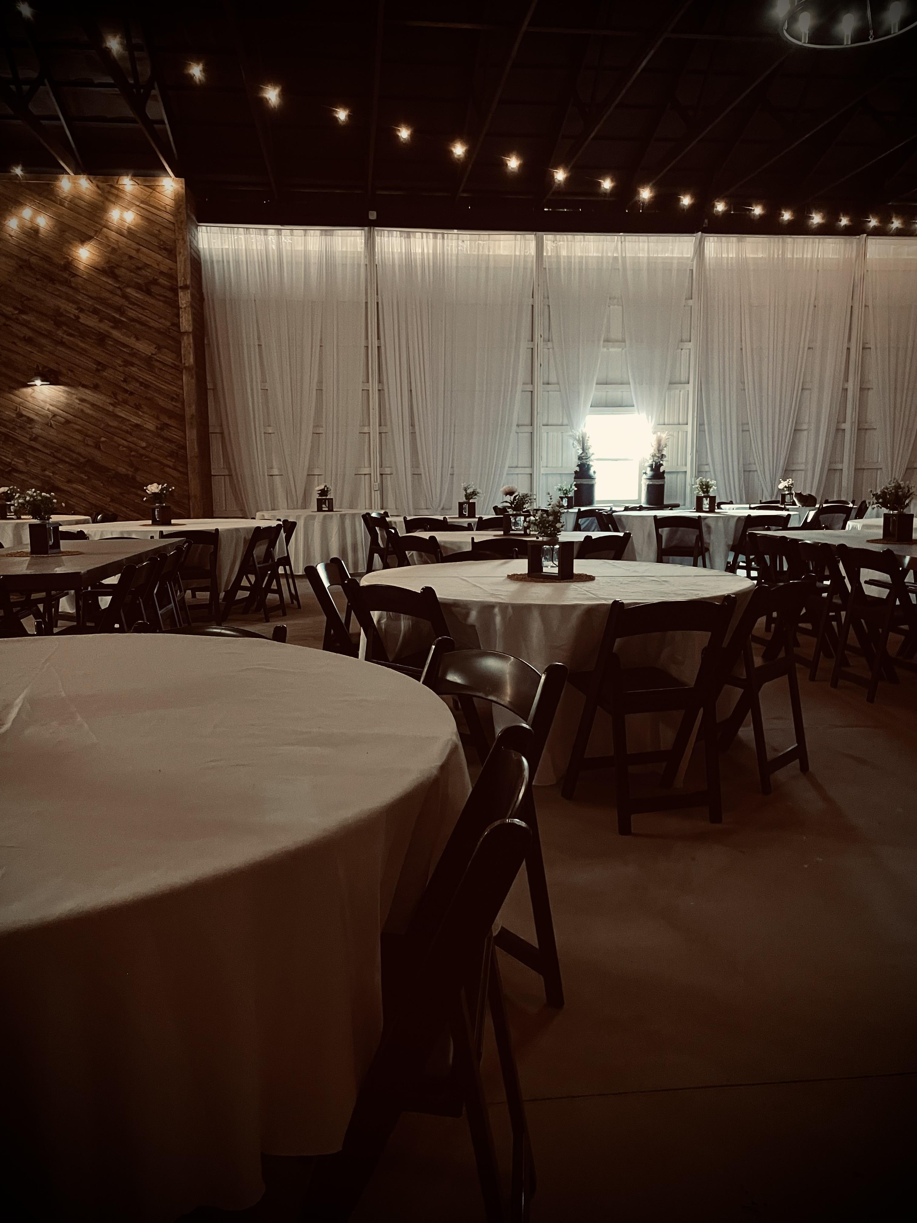 This space is fully customizable for up to 200 guests as well as more intimate celebration. All tables, linens and chairs included.