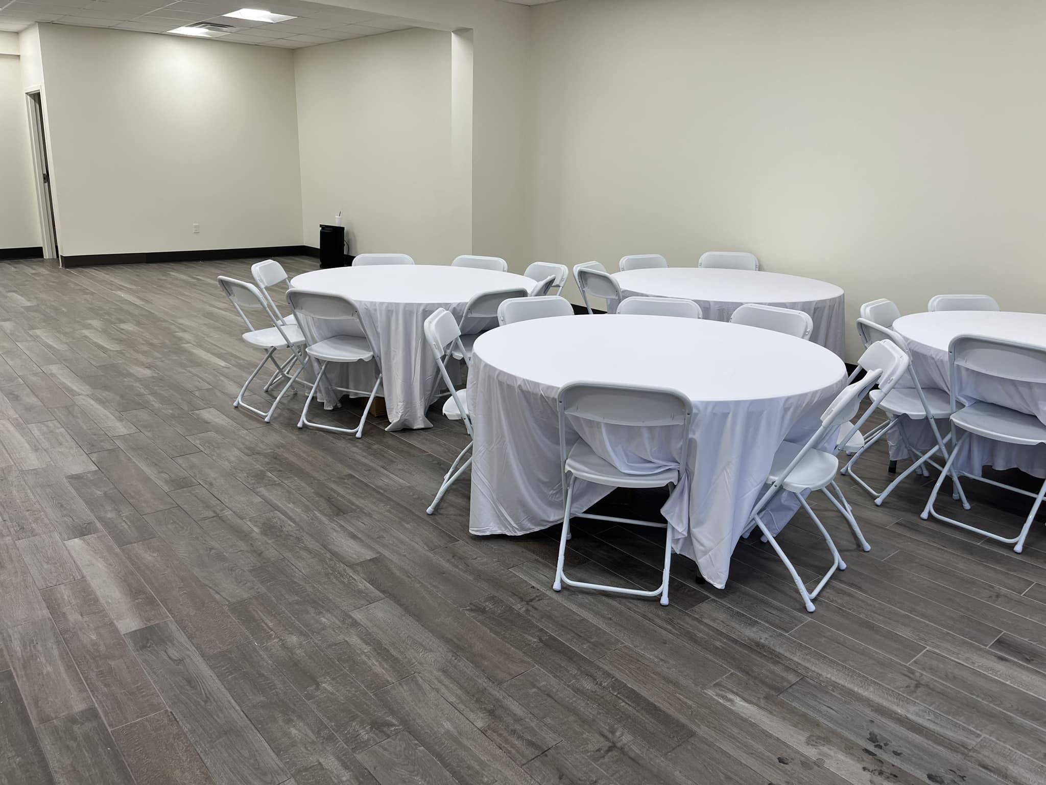 Basic Wedding Package Includes: • 7-hour use of our venue for the setup, wedding ceremony, and reception. • 1-Hour use for Venue Clean Up • 3-hour use of our venue for wedding rehearsal • 60 Inch Round tables for dining • Chairs for seating ***A $300 Cleanup fee will be charged to the card on file if the venue is not cleaned***
