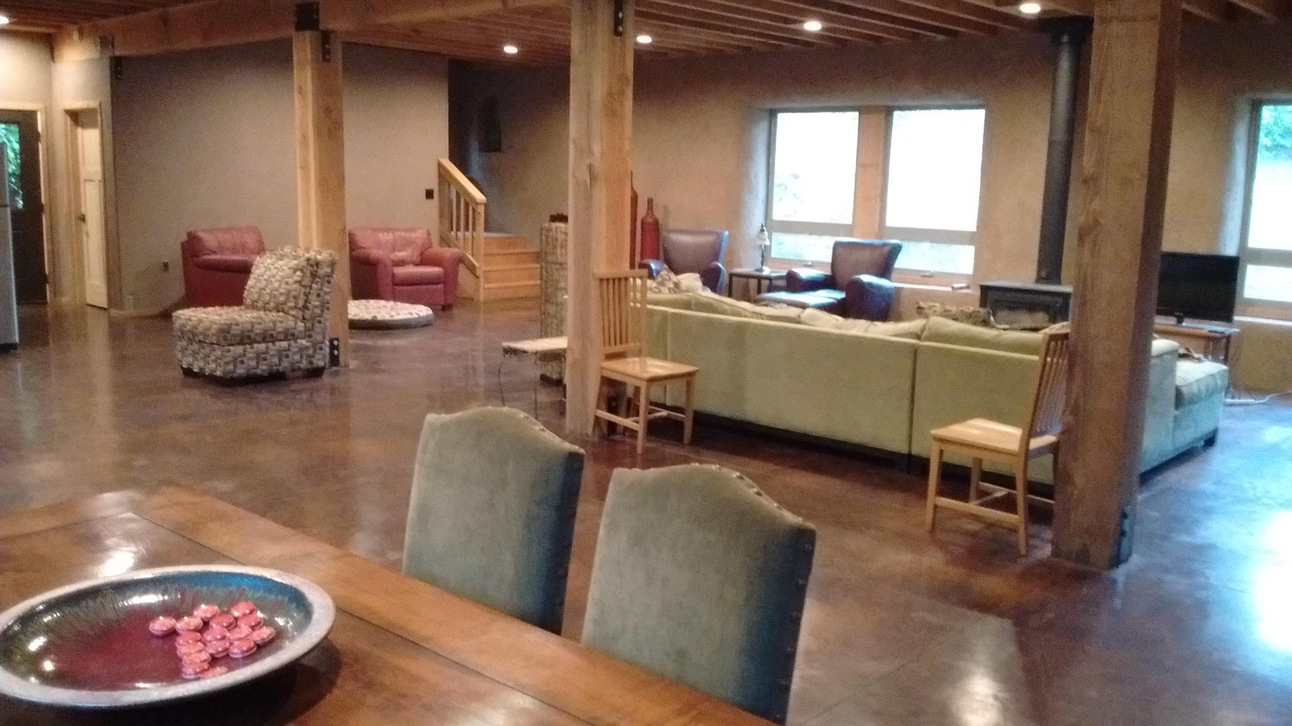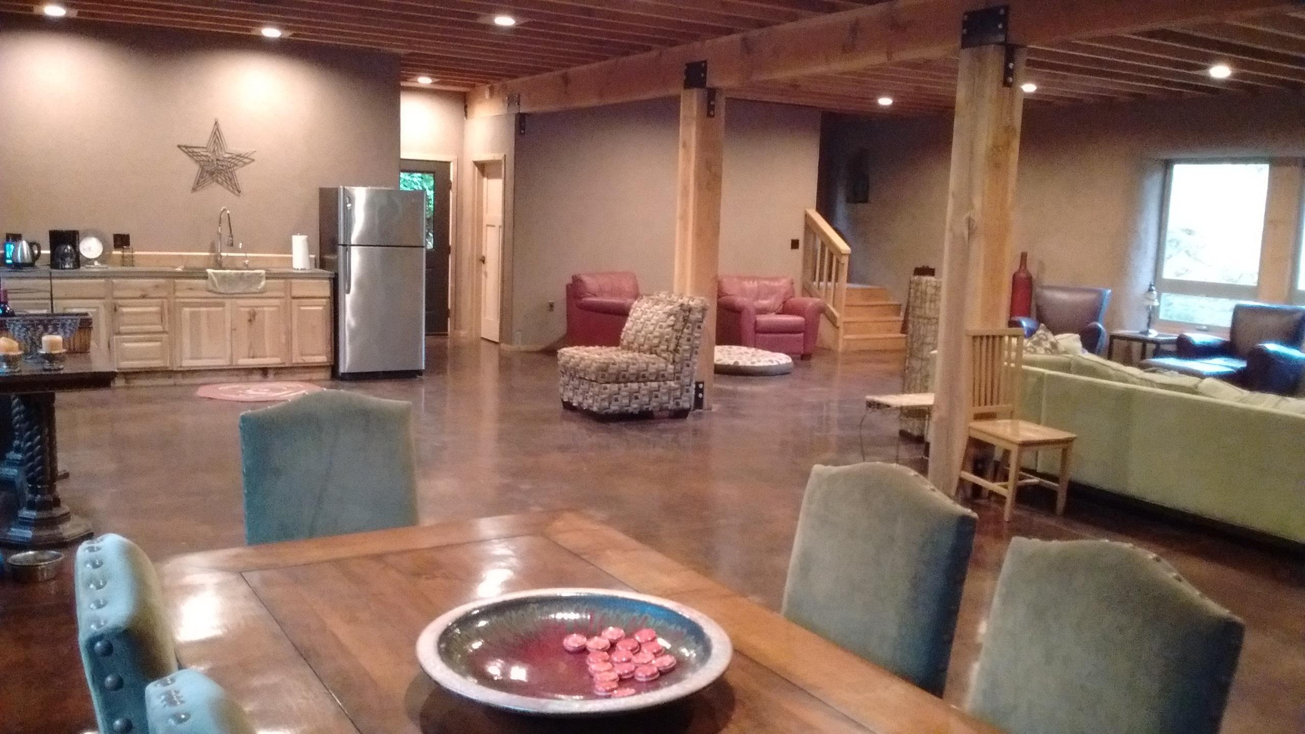 The straw bale day lodge was hand built by the owners. Lower floor of lodge is available for bridal party preparation before the wedding ceremony. Plastered walls in earth tones with rough sawn timbers milled locally. Must see to appreciate.