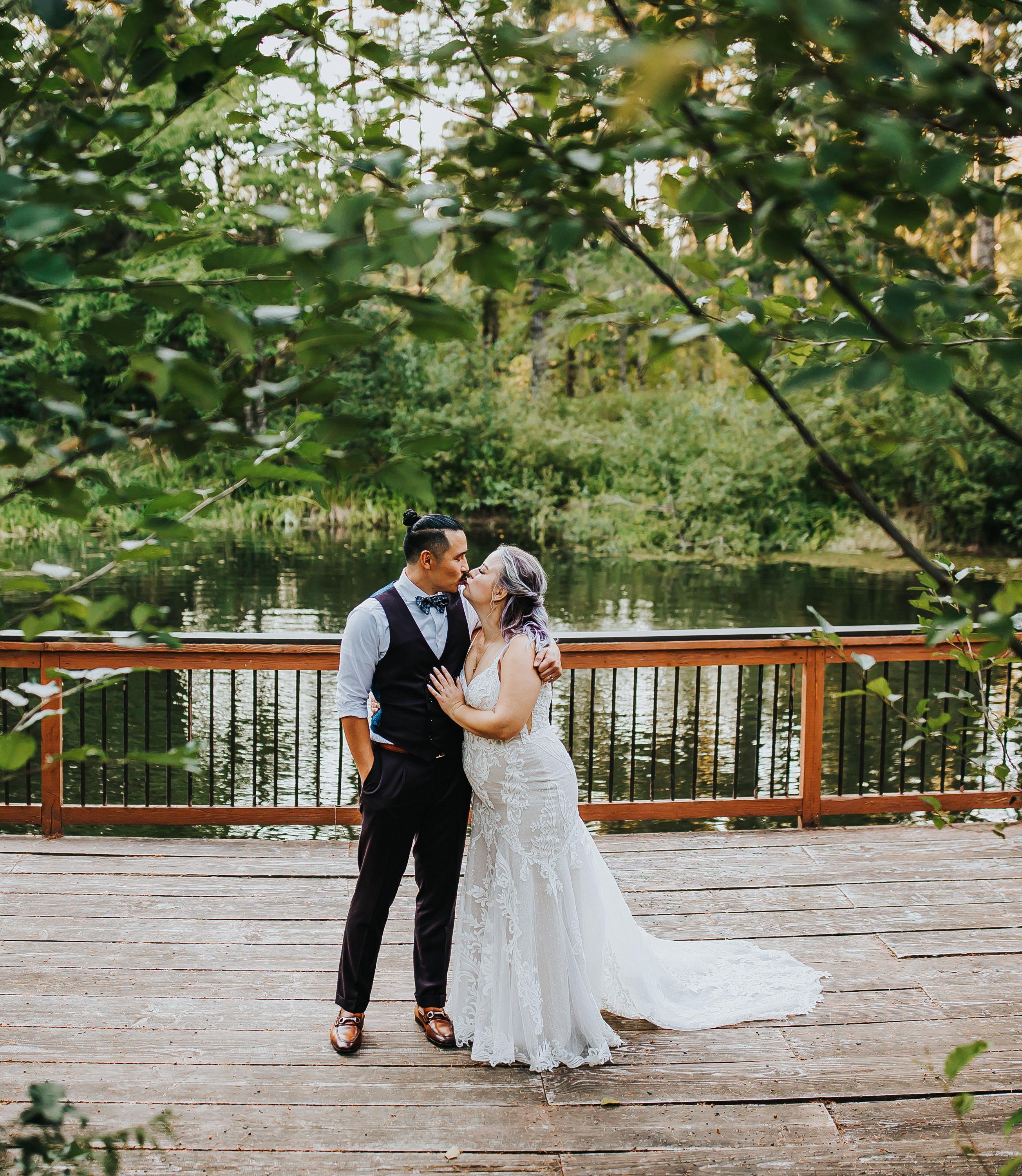 There's just so much to love about these 28 secluded acres—rustic, welcoming buildings, a peaceful pond, trickling creeks, springs, meadows, and trails, all surrounded by forestland. Exchange vows in the perennial flower garden, then celebrate under the charming peeled log pavilion. Enjoy cocktails at the outdoor bar, or come up with an idea your hosts haven't seen yet. they love it when couples get creative! Enjoy your overnight stay in the cool glamping yurts, platform tents, and honeymoon cabin. Spend the day cycling the Banks-Vernonia State Trail, hiking, or playing lawn games, then gather around the fire pit at night reminiscing over s'mores.