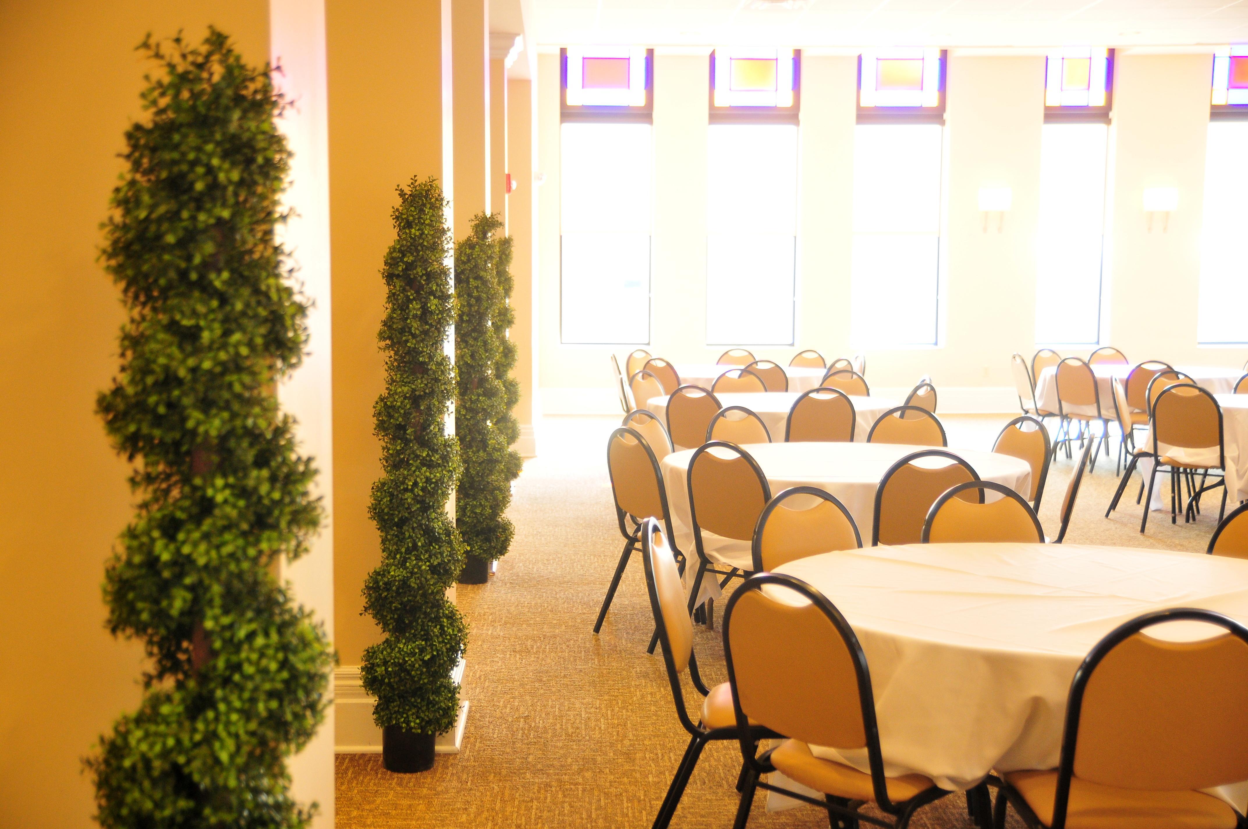 The City Club features original restored stained glass windows and baseboard trim. It is equipped with state-of-the-art audio and lighting fixtures for custom celebrations. This historic hall can host large festivities that feature a dance floor, entertainment, and dining tables. Located on the third floor of the new Center For Business Services, this is a private yet centrally located event space. Dimensions: 37'x76' Max Capacity: 200