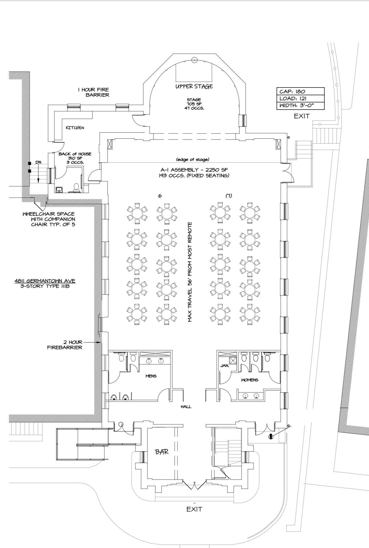 Full service bar. Loft area for changing and additional bar. Prep kitchen. Outside grassed area Off street parking / free onstreet parking Sound and lighting