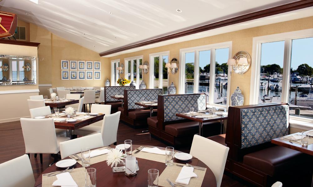 At the mouth of the Connetquot River and overlooking Great South Bay, View is Long Island's ideal location for wedding and social events - an atmosphere that is at once elegant and casual. The light and airy main dining room boasts a crisp seaside vibe, with walls of windows, white leather chairs, and rich wood tones. The outdoor patio affords panoramic views of the bay alongside a 20-slip marina, perfect for cocktails and hors d'oeuvres or waterfront ceremonies.