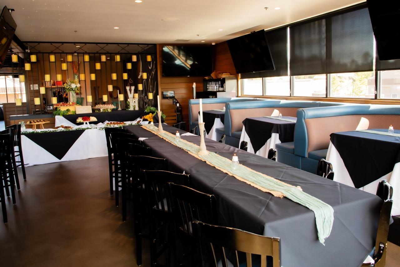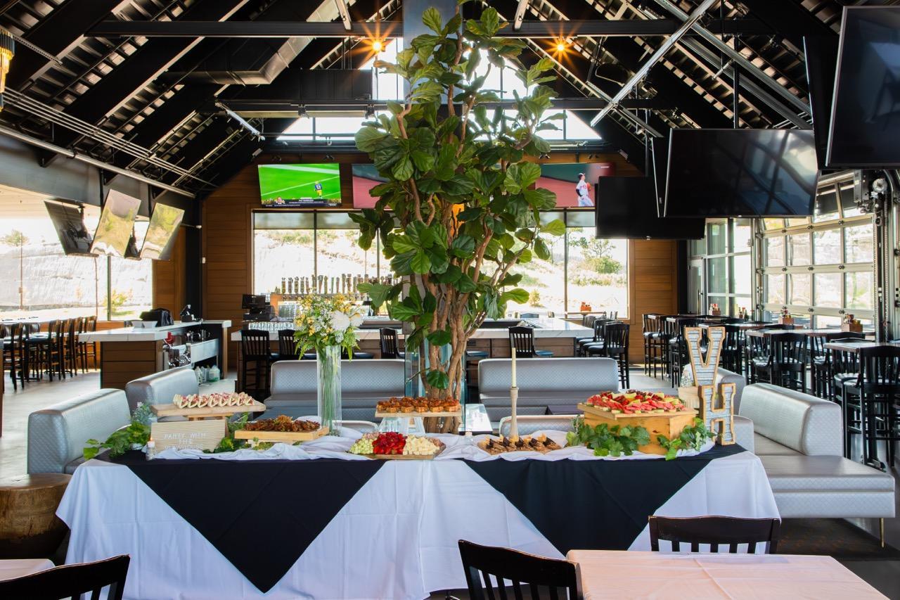 Experience our captivating Rooftop Social, offering a semi-private section that provides a remarkable atmosphere with awe-inspiring mountain views. This space features three horseshoe booths and three high top tables, accommodating up to 40 guests. Immerse yourself in the natural beauty of the surrounding mountains as you socialize, creating unforgettable moments in this elevated setting.
