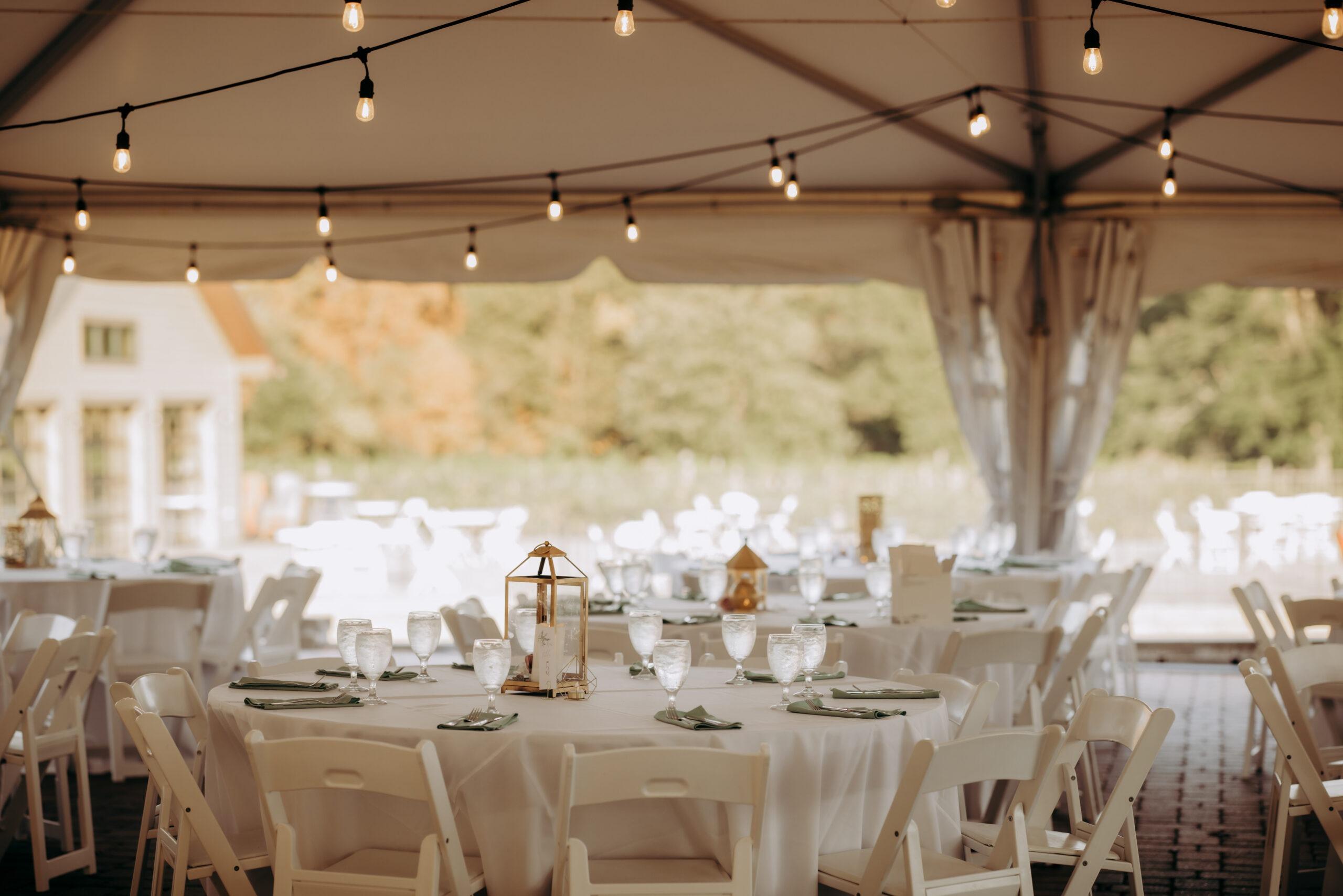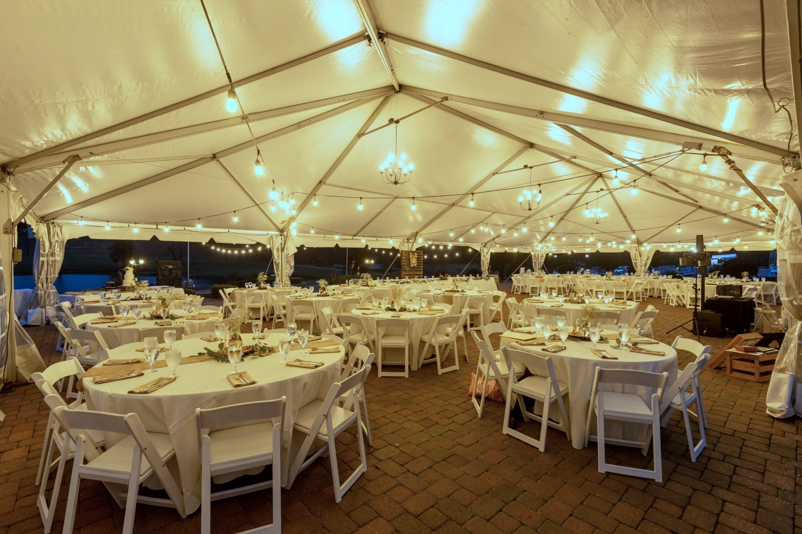 Our large wedding tent provides sweeping views of the lake and vineyards with seating for up to 250 guests. The tent measures 3200 square feet and is iluminated with three independently controlled chandeliers as well as party lighting. The wedding tent can be fully enclosed and heated.