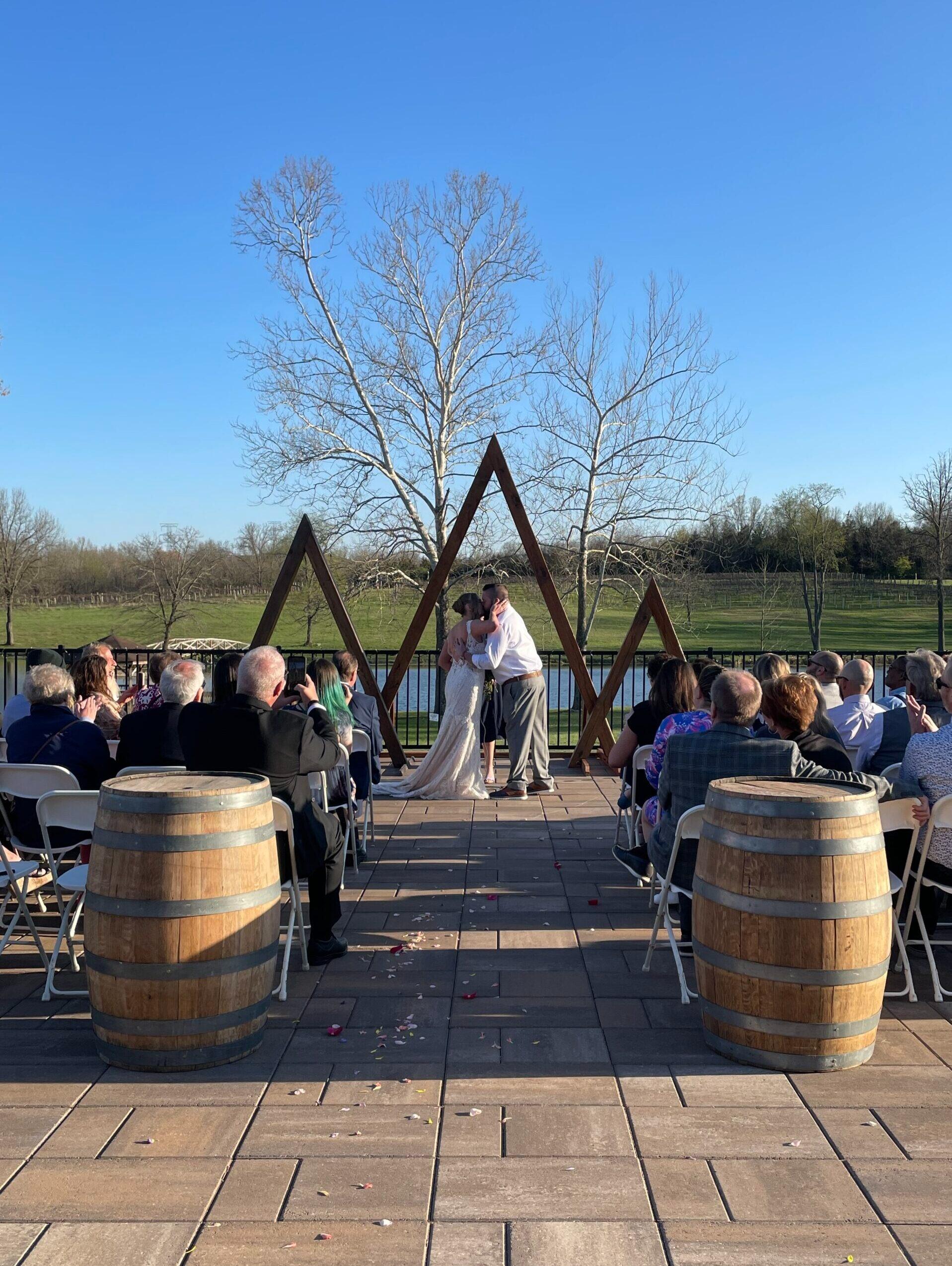 Our venue offers a variety of stunning ceremony locations to suit every couple's vision. The Grand Patio provides breathtaking views of the lake and vineyards, along with safe and easy access for mobility-challenged guests. Just downhill from the Wedding Tent, the Lake Side Ceremony site features picturesque views of the water and surrounding vines. For a more intimate setting, the Between the Trees location—adjacent to the Gazebo—offers unmatched views of the lake, footbridge, and vineyard backdrop. And if the weather doesn’t cooperate, your indoor ceremony can be seamlessly relocated to the reception space, ensuring a beautiful celebration rain or shine.