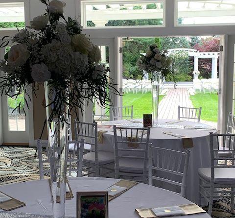 Discover the luminous charm of our Maine Ballroom and the serene beauty of our Outdoor Ceremony Pergola Garden