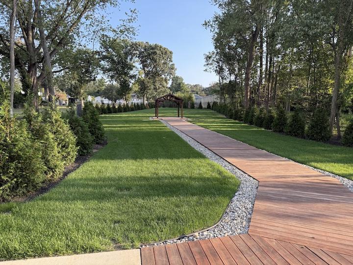 This space will become even more beautiful as the perimeter Green Giant Trees grow at 3' per year. It adjoins the outside patio for cocktail hour.