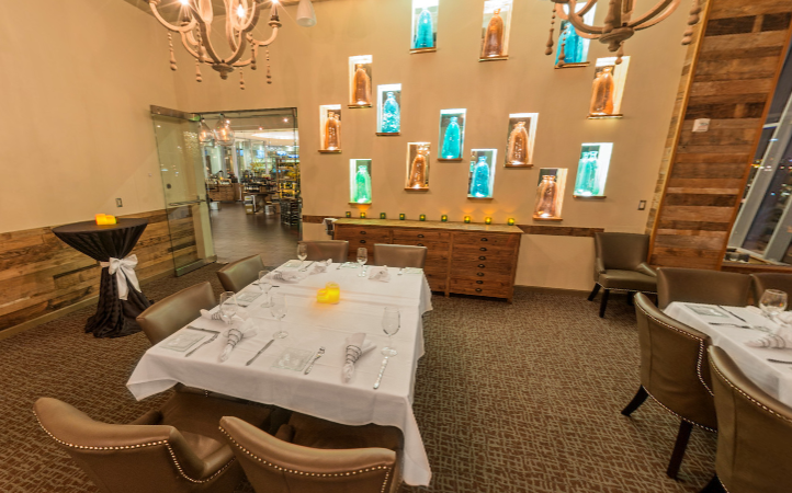 Our Vintage Private Dining Room accommodates up to 40 Guests seated and offers the perfect setting for wedding celebrations, from rehearsal dinners to intimate receptions. Featuring Vintana’s signature floor-to-ceiling glass windows, this elegant room bathes your event in natural light and stunning views. It’s our most sought-after space for couples looking to elevate their wedding dining experience with timeless sophistication and unforgettable ambiance.