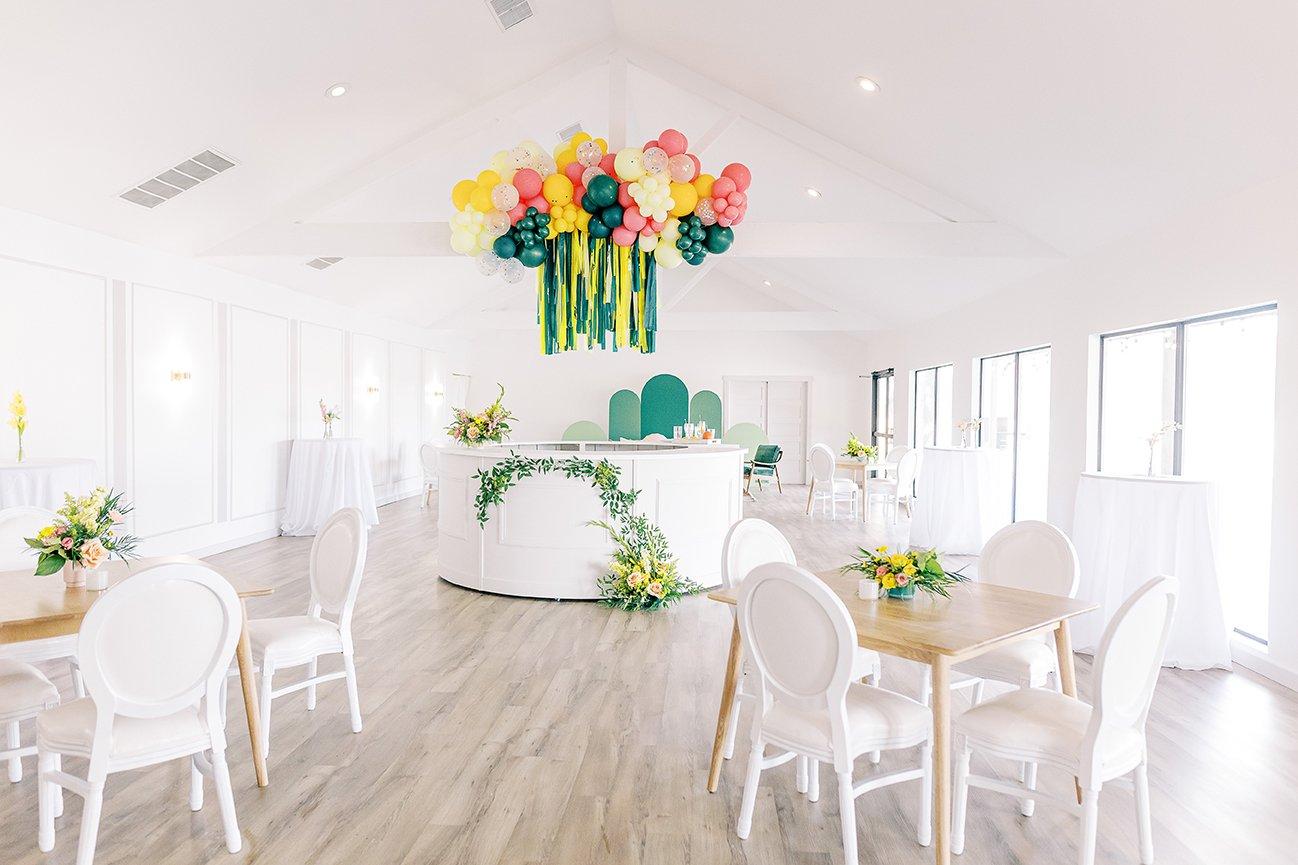 • Seats up to 250-300 guests depending on floor plan • 300 chairs • 30-60in round tables • 10-8ft rectangular tables • 10-high-top tables • 10-6ft rectangular tables • 1 half-moon table • Bride and Groom suite • Set-up and break down of tables and chairs • One hour rehearsal prior to wedding • One hour engagement photos or bridal portraits