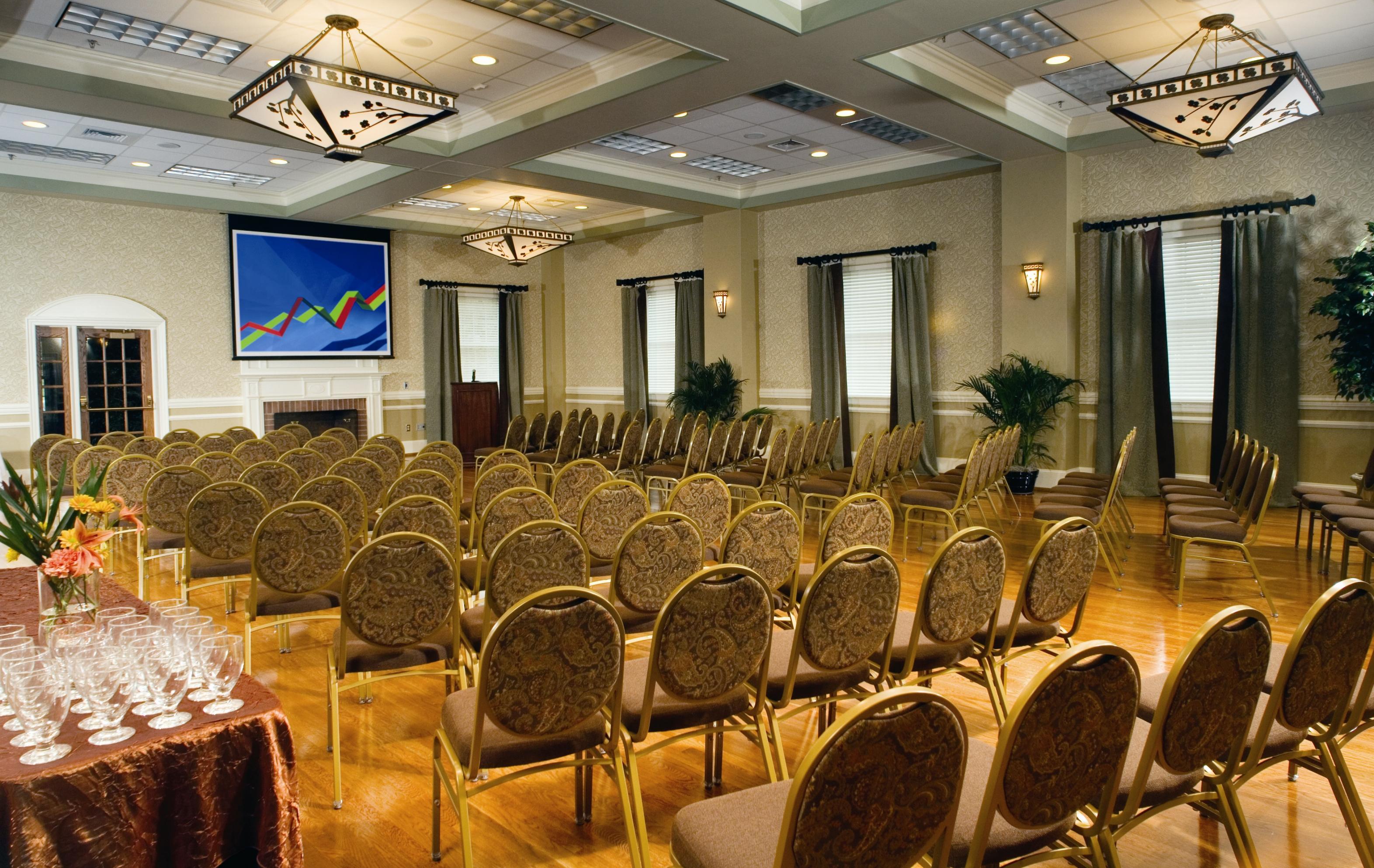 Elegant, modern décor • Lustrous hardwood flooring • Mahogany podiums and bars • Baby Grand Piano • LCD projectors and screens • Wireless Internet service • Use of A/V system with wireless microphones, satellite radio, and computer connections