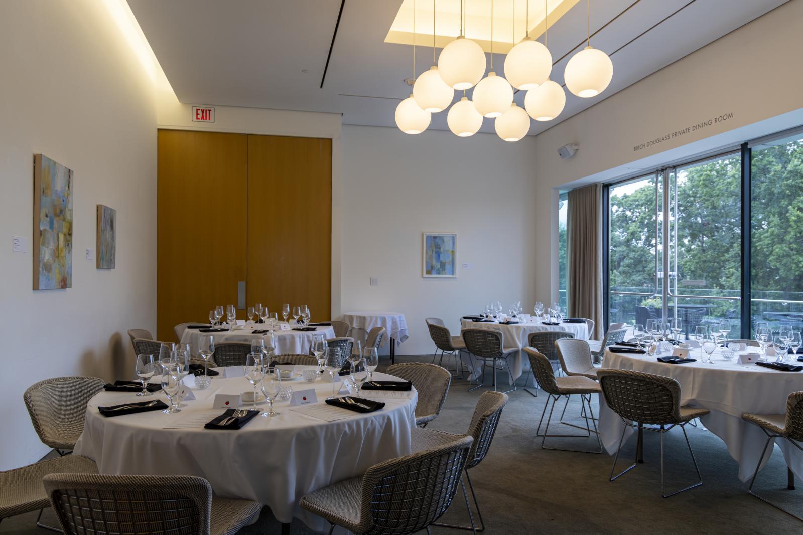 Enjoy a stunning corner view of the Sculpture Garden, its water features and lush landscape leading up to the Belvedere. The Claiborne Robertson Room can accommodate meetings, dinners, small weddings, and other intimate events. Adding the Birch Douglass Private Dining Room or Amuse Restaurant, when available, will expand the possible event size.
