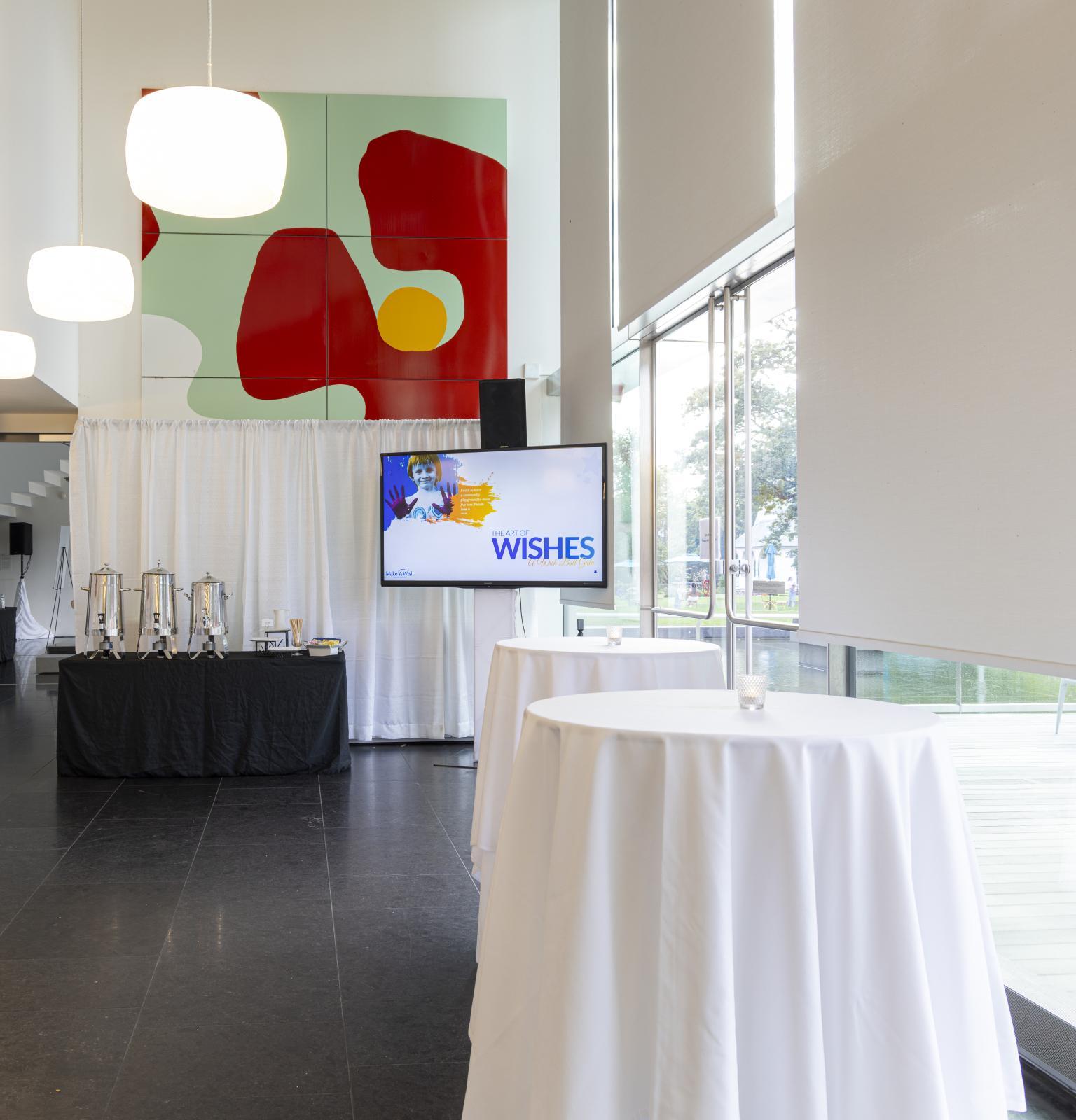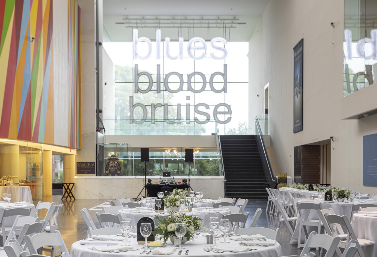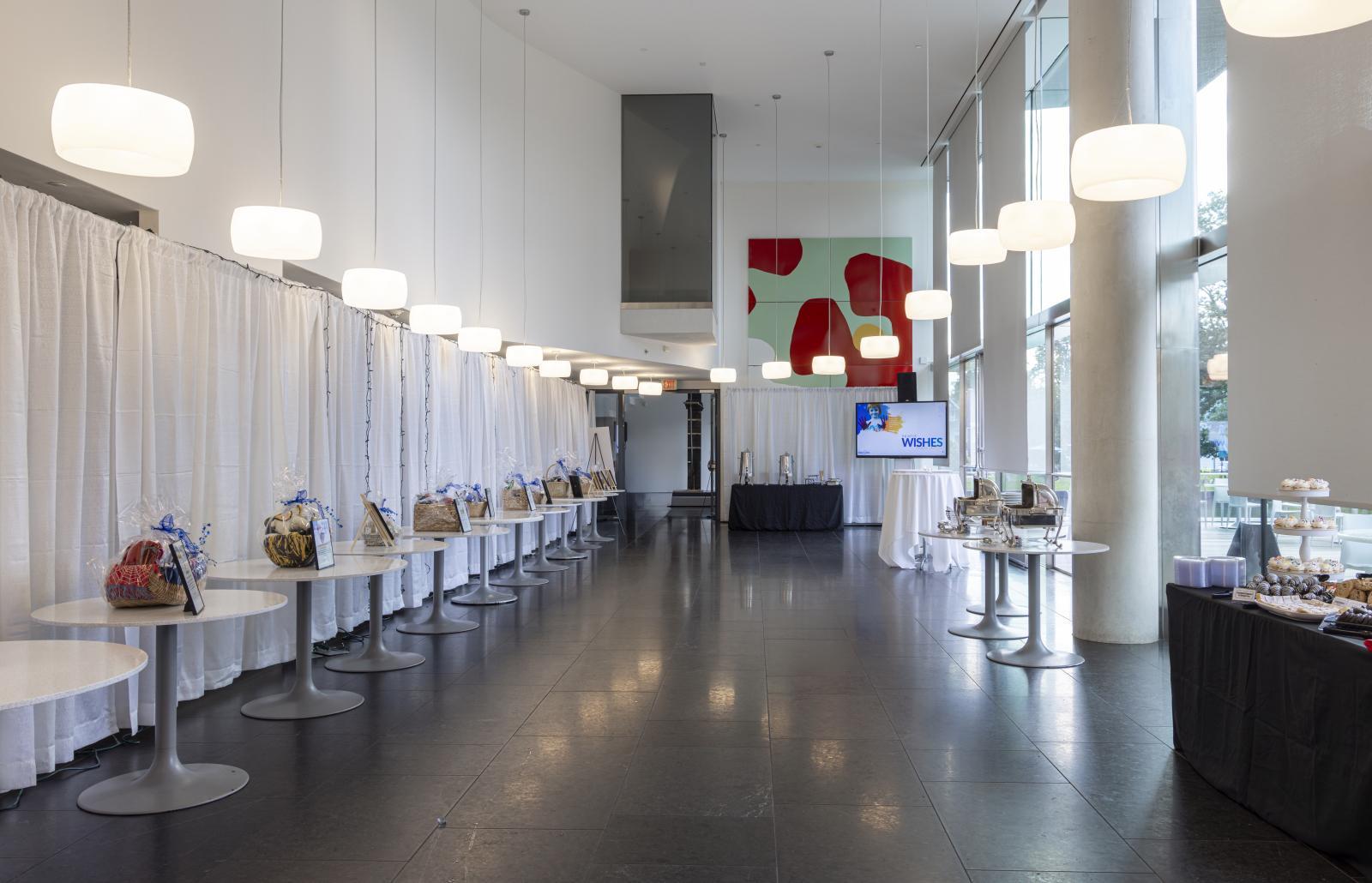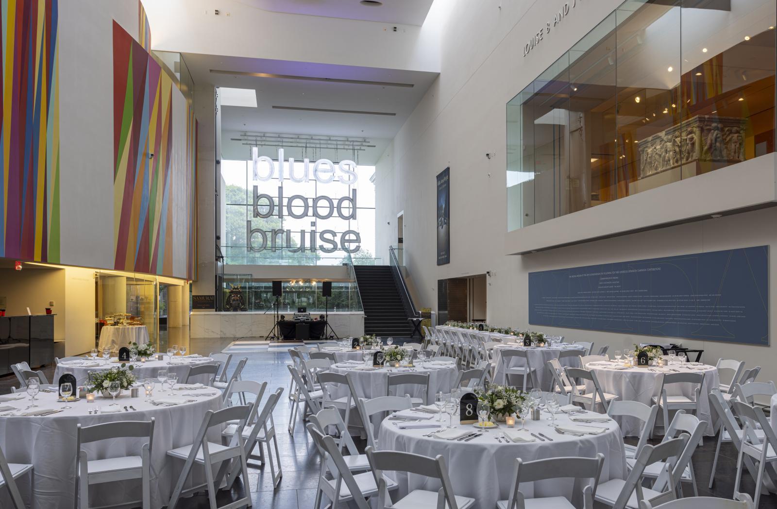 This distinctive space inside the main entrance connects the museum's newer McGlothlin Wing with its two long-standing wings and opens into the VMFA Shop, Best Café, and collection galleries. Your guests will socialize in style beneath the lofty four-story ceiling. Clear glass walls reveal magnificent views of Arthur Ashe Boulevard and Robins Sculpture Garden, providing a striking backdrop for any special occasion.