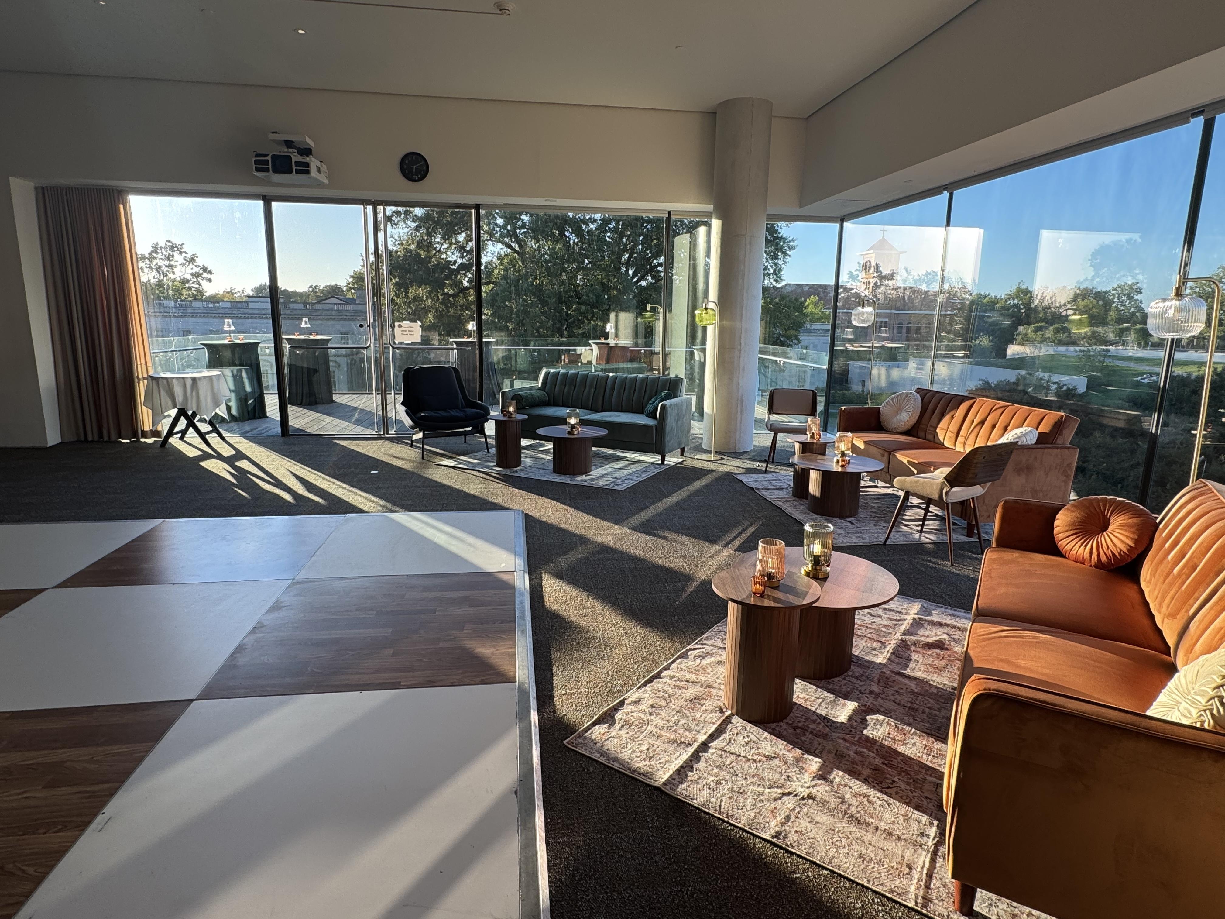 - Lights with dimmers - Expansive terraces (weather allowing) - Additional connecting spaces available (Claiborne Robertson Room and Birch Douglass Private Dining Room)