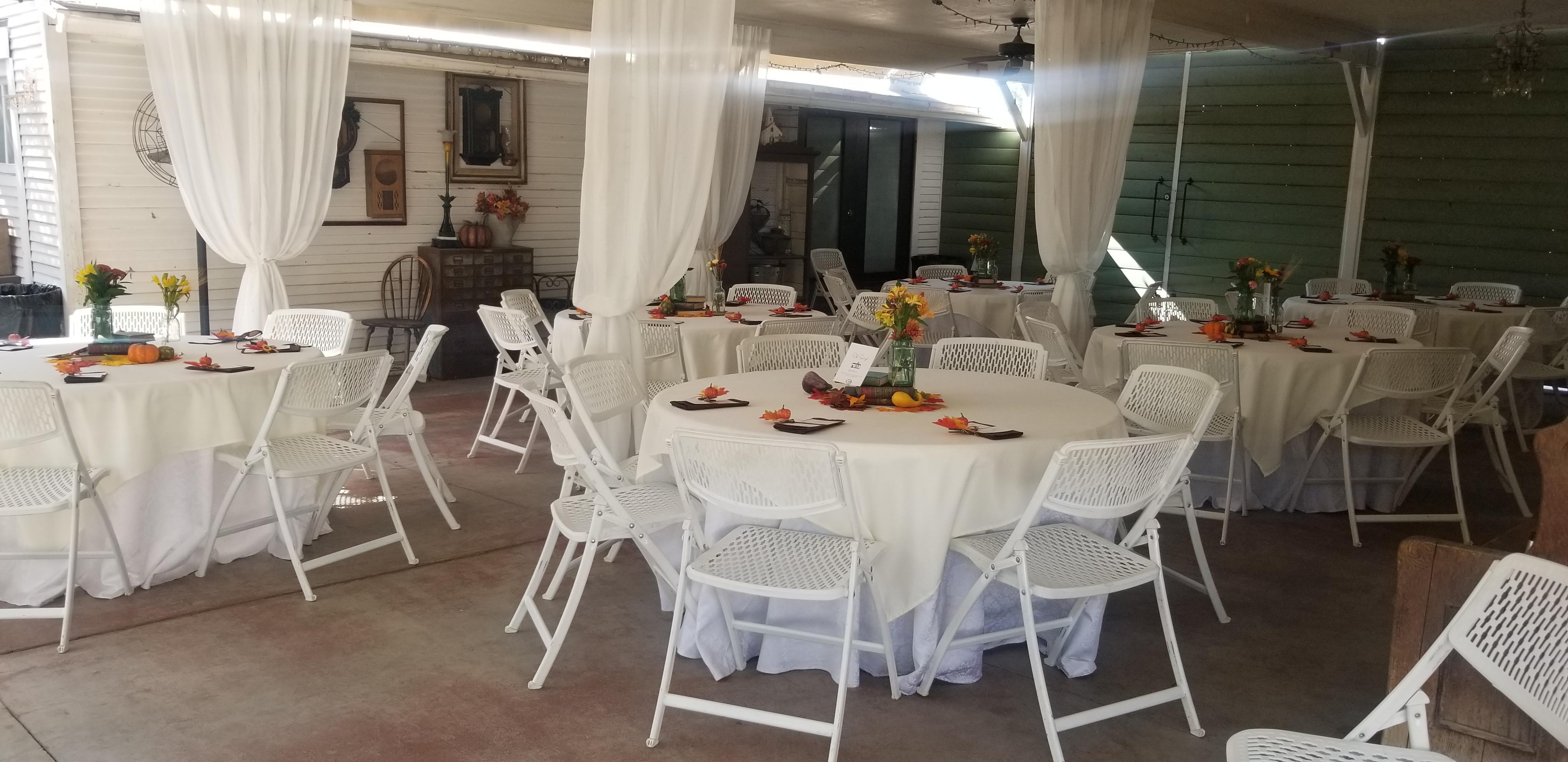 - Tables, chairs, linens and centerpieces