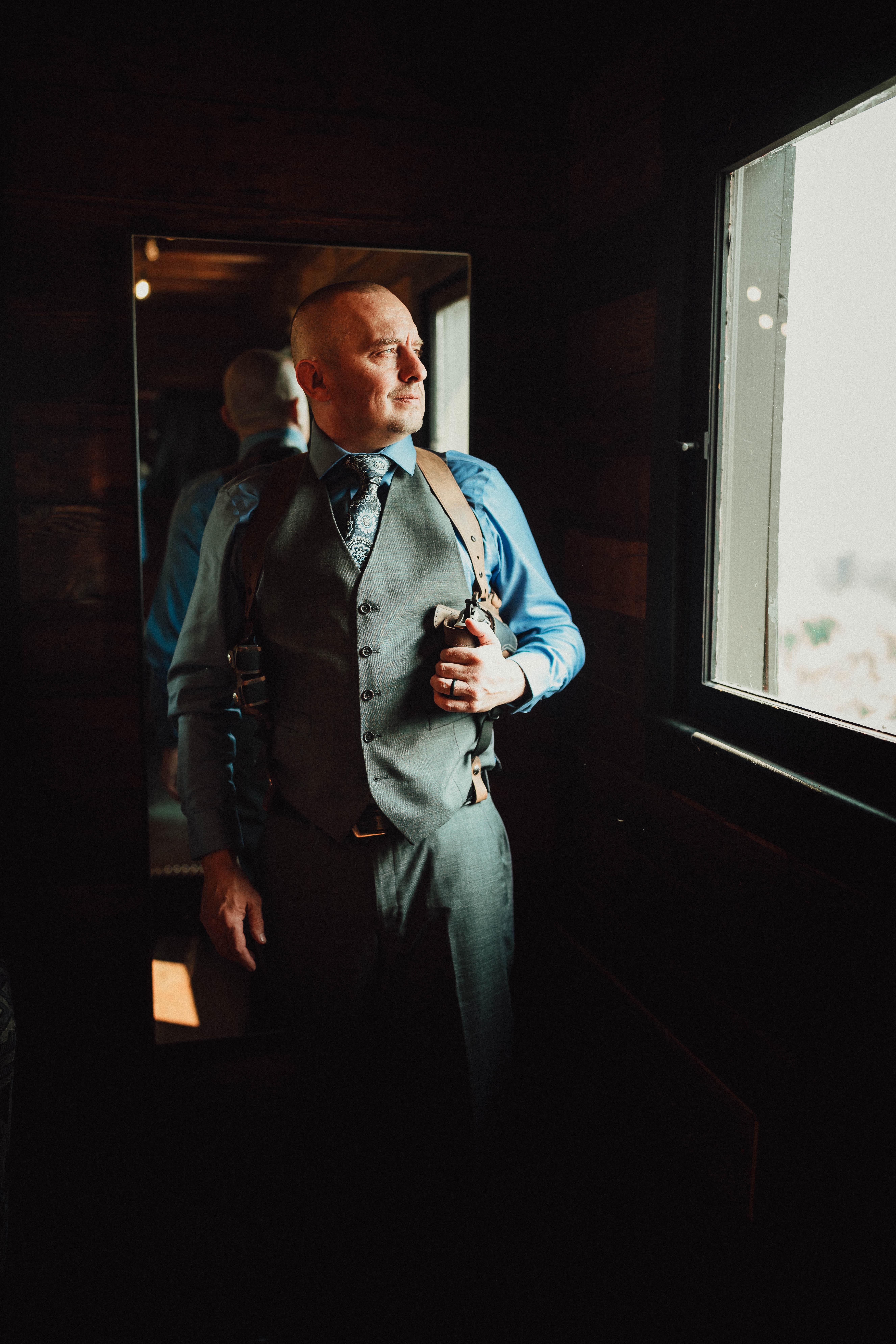 Step into a space designed just for the groom and his party—a rustic, masculine retreat where preparation meets relaxation. Rich wood-paneled walls, a cowhide rug, and mounted horns set a sophisticated yet playful tone, making it the perfect backdrop for pre-wedding moments, toasts, and memories with your closest friends.