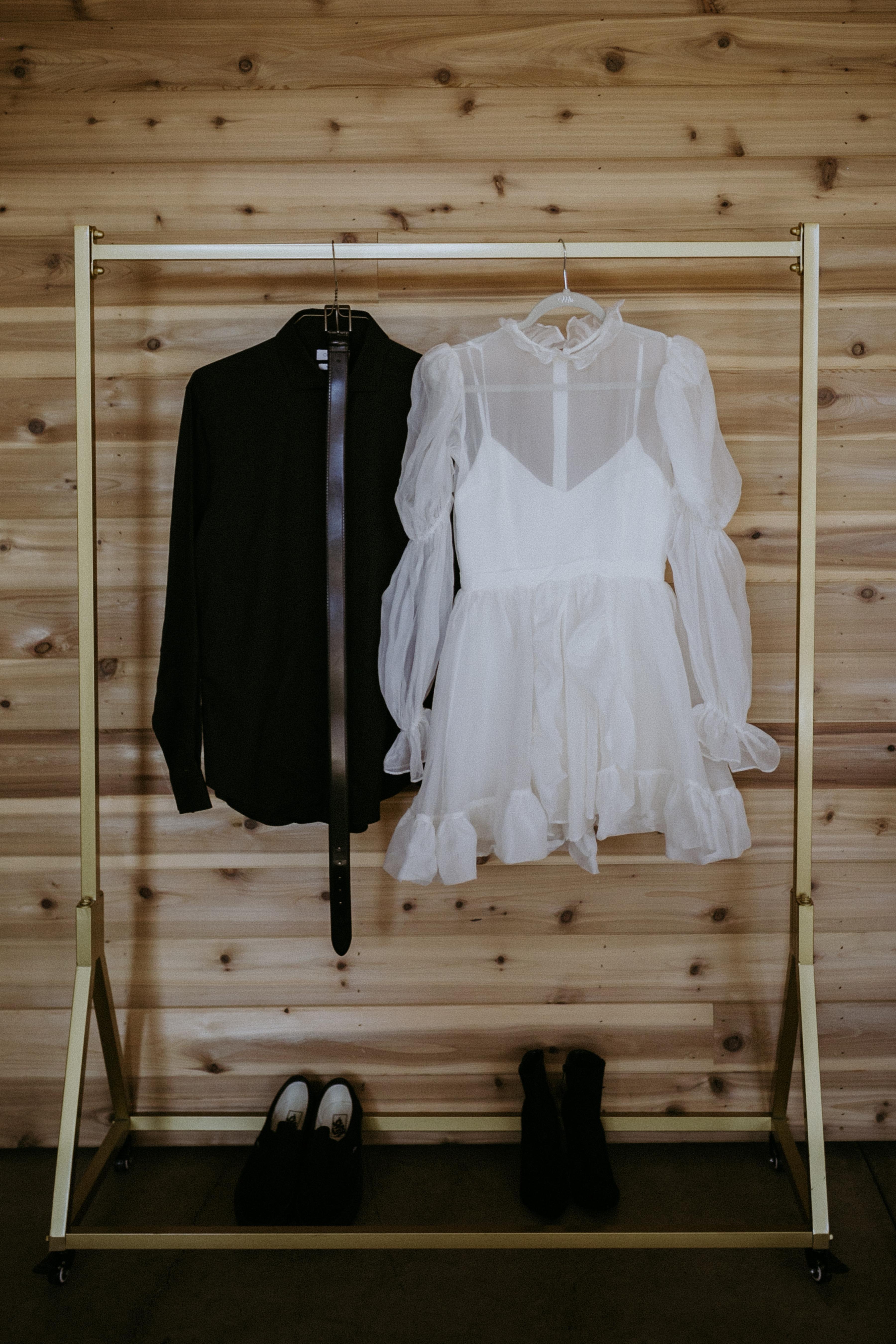 Warm Edison bulb lighting for a cozy, inviting atmosphere Four mirrors, including two full-length Clothing hanging bar for suits, jackets, and accessories Comfortable seating Dining table and chairs for snacks, toasts, or planning Mini fridge to keep drinks and small bites chilled Front porch with serene pond views, fountain sounds, and built-in table & stools Handwashing sink Private, outside portable restroom Temperature control with portable AC, heater units, and fan for comfort