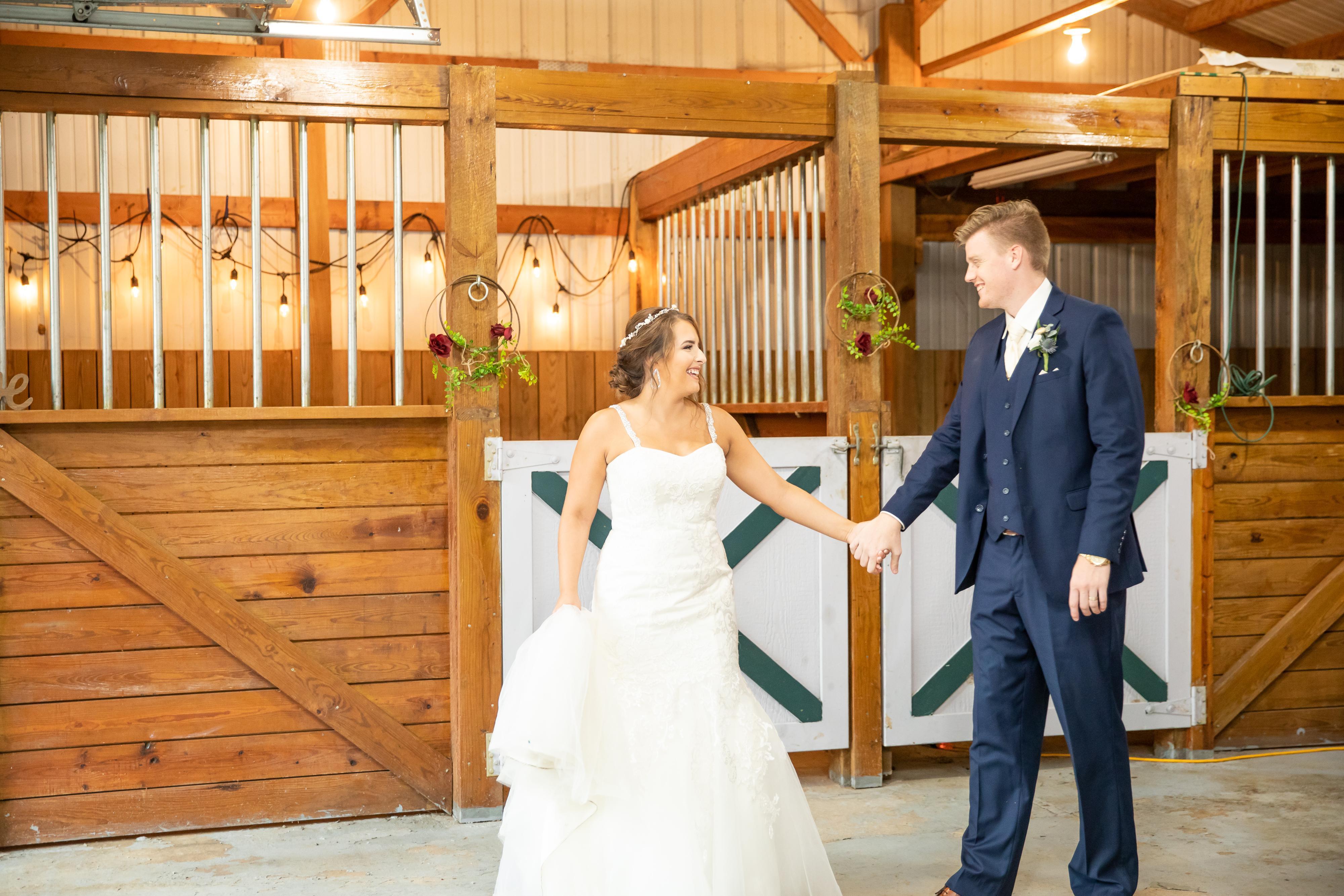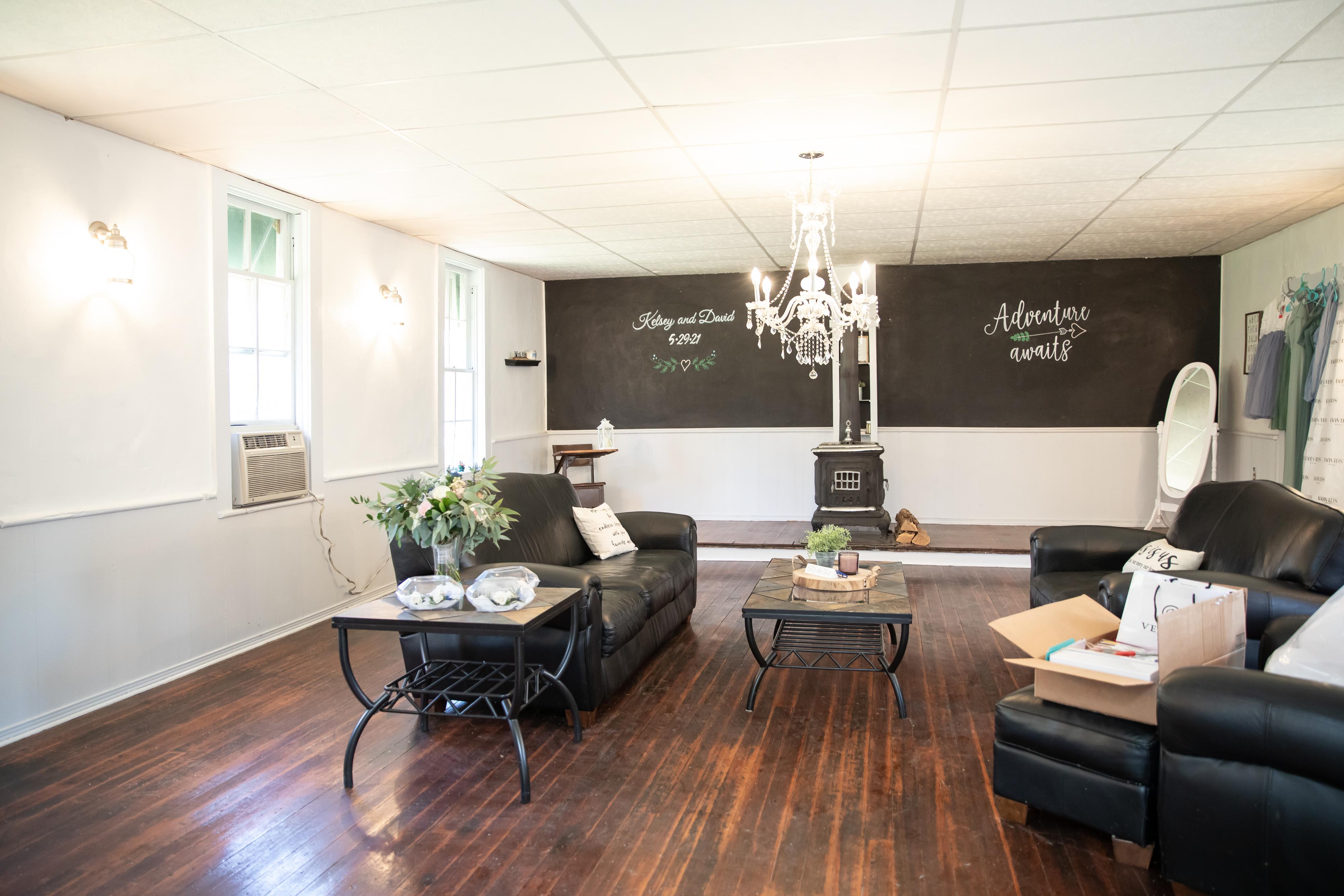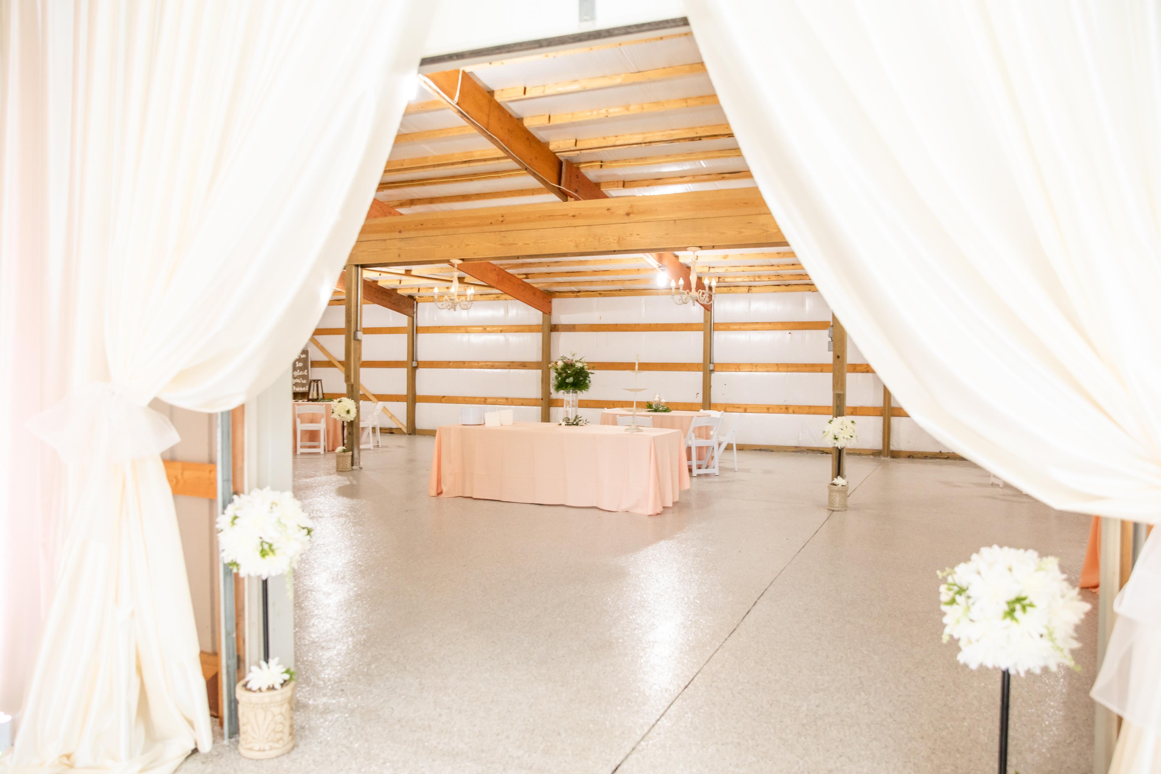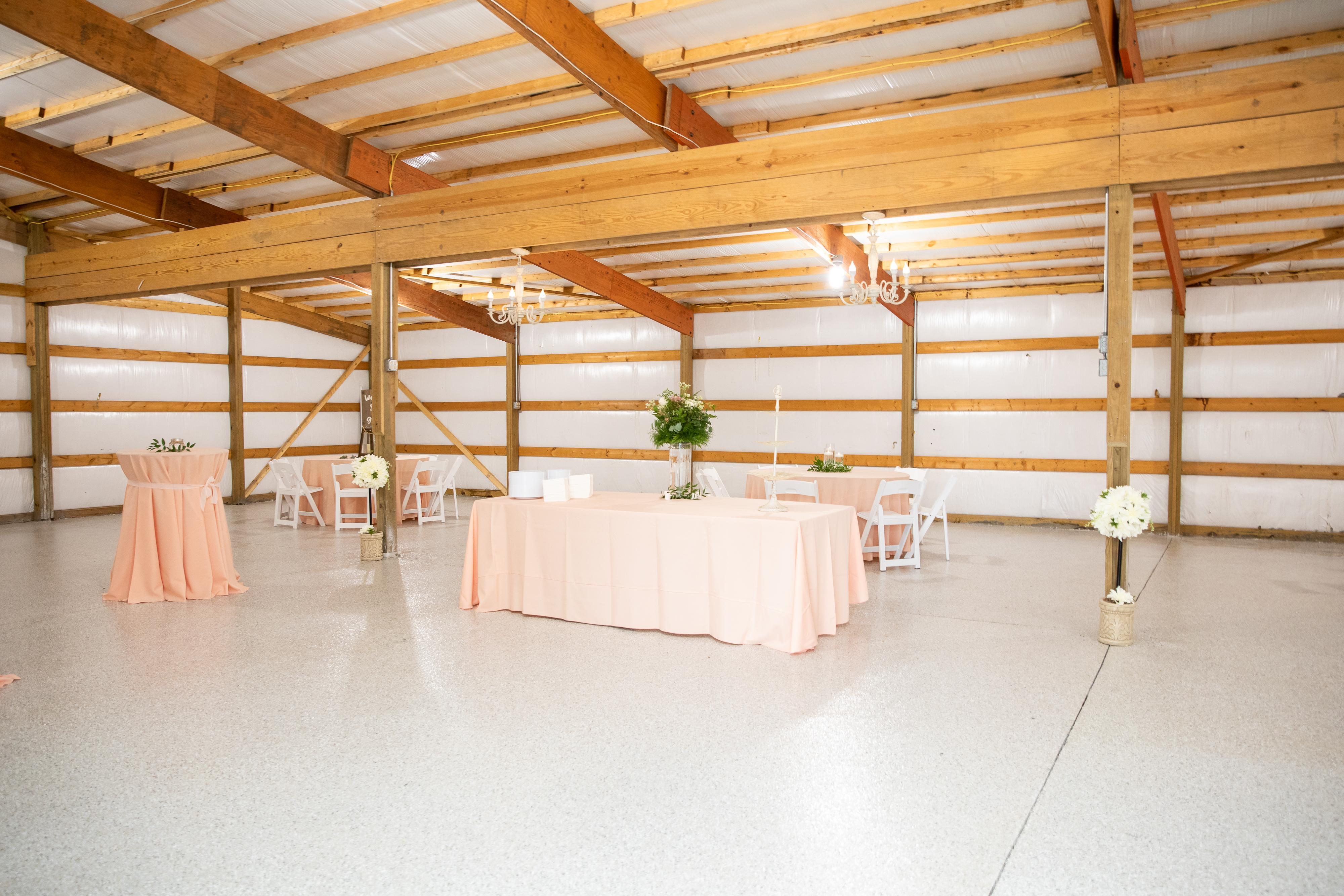 - 40 acres of woods & trails (ceremony and/or reception can be held outside) - Tables & chairs for 150 people - Sweetheart table - Chandeliers with dimmers & string lights - Pipe and drape for large reception barn - Mobile bar & refrigerator - Optional decor - Access to the property for engagement pictures - Ability to decorate the day before