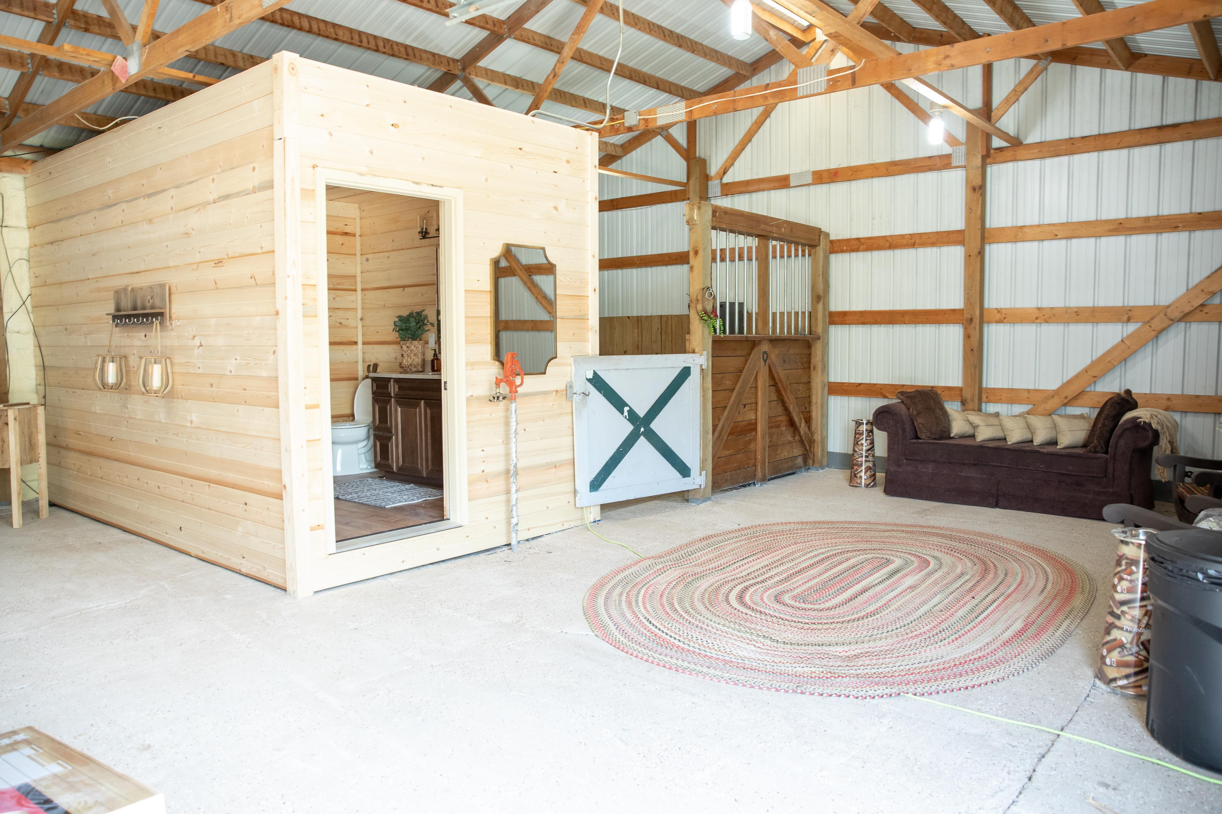 - Horse stables - Seating area - Restroom & shower - Corn hole