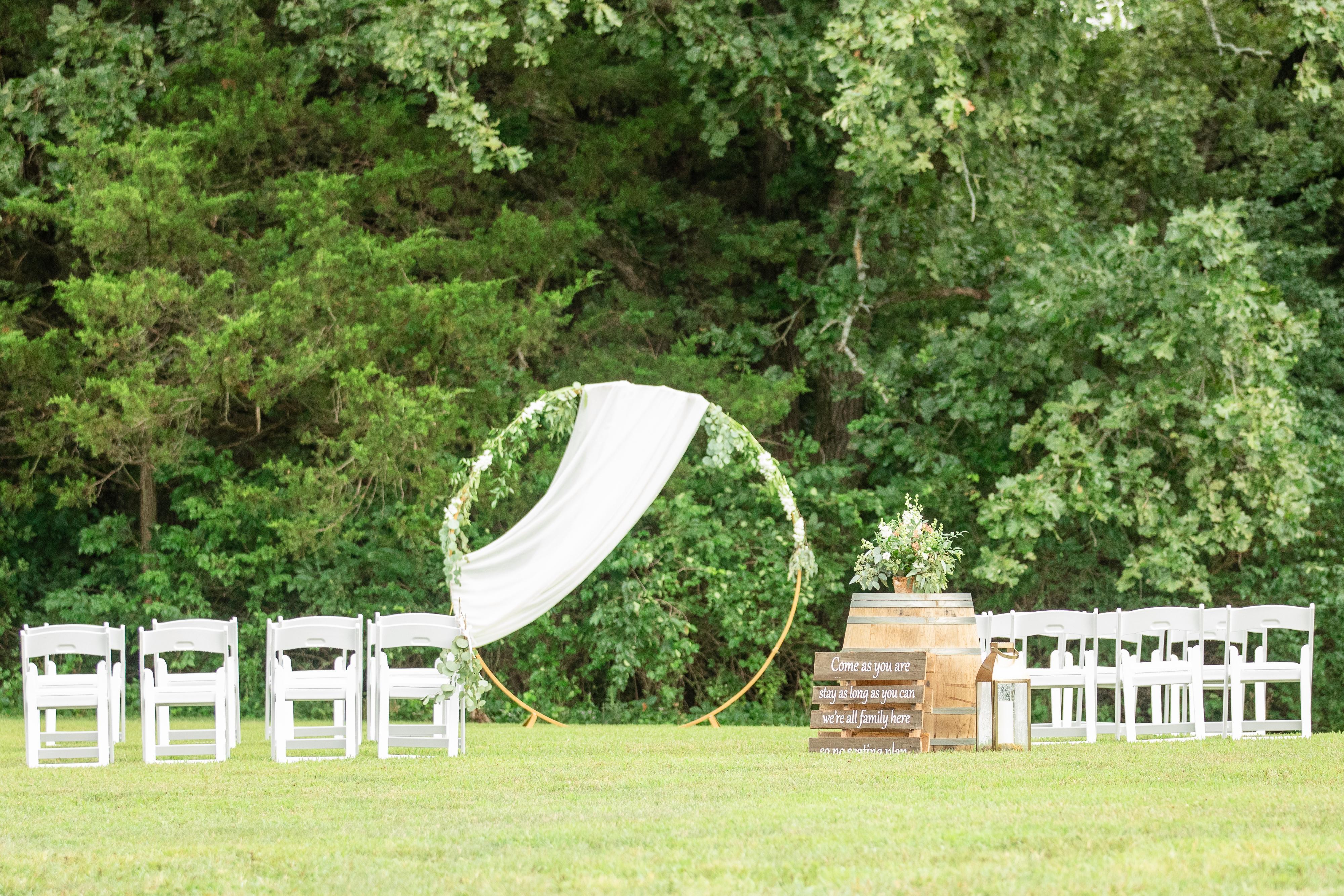 Our outdoor reception space is perfect for those wanting a natural backdrop as you are surrounded by hundreds of oak and cedar trees. We can seat up to 150 guests.