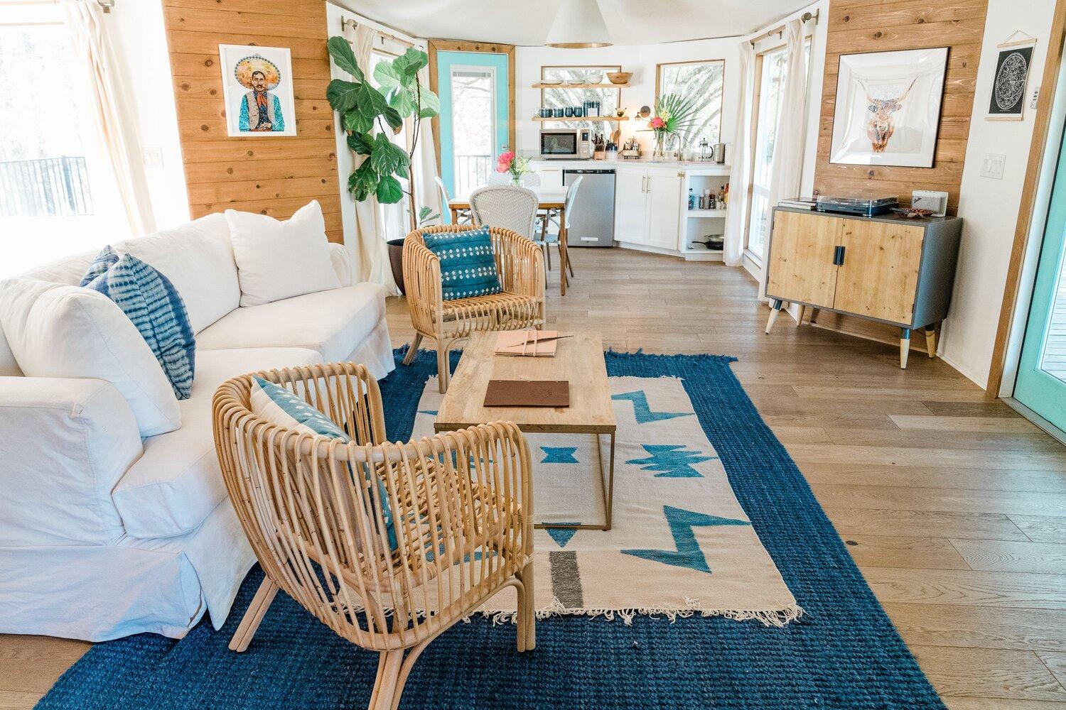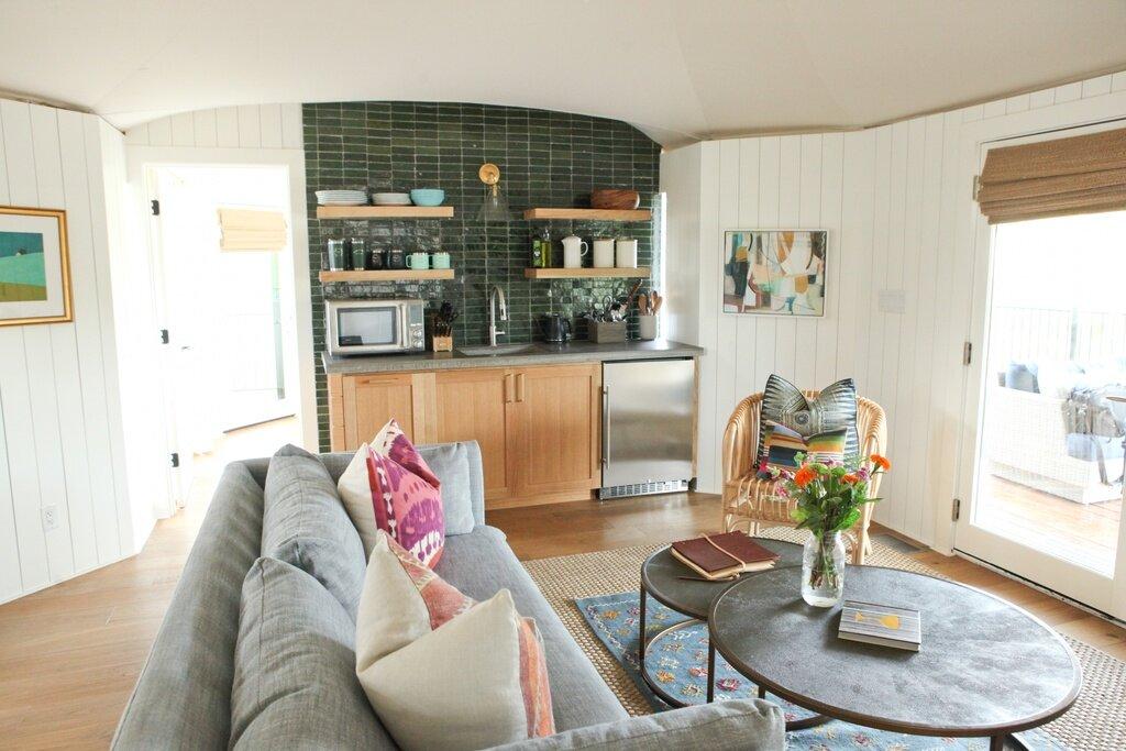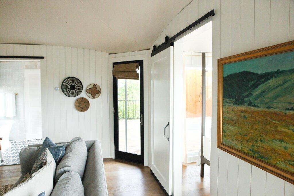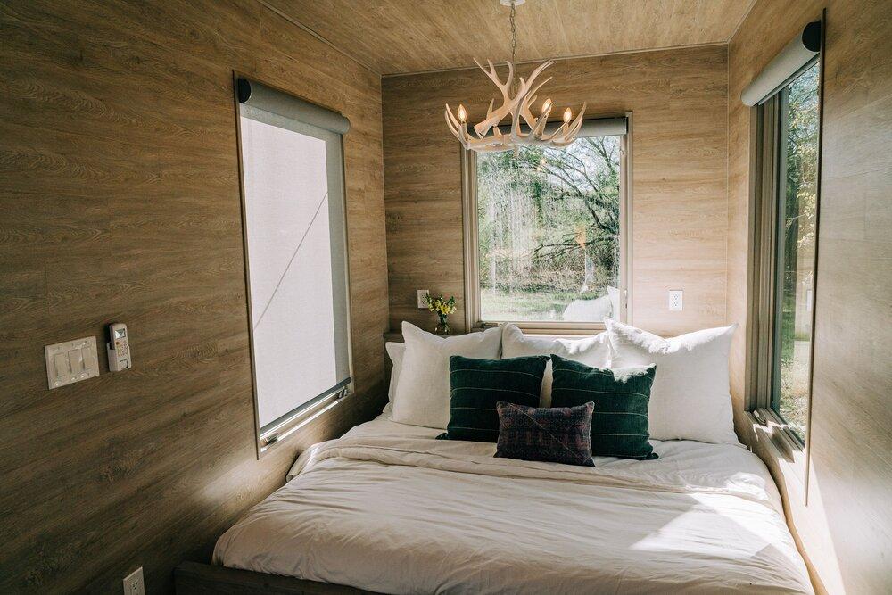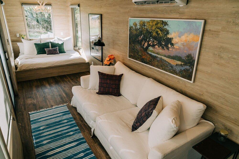 King sized bed Sofa Luxury linens Air conditioning and heating Tub, private flush toilet, and outdoor shower Aveda Shampoo, Conditioner, Body Wash, and Soap (We currently do not have Aveda products due to COVID shortages) Kitchenette including a mini refrigerator and french press for coffee Lodge cast iron Ground Coffee Outdoor deck Outdoor shower Outdoor kitchen with Big Green Egg and Gas grill Firewood and Charcoal Lighter Golf cart